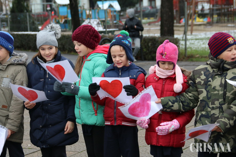 Elevii care au participat la activitate au primit câte o inimioară colorată roşie, având o strofă şi refrenul cântecului ,,Prietenia” inscripționate pe spate. Copiii au ridicat inimioara spre cer, de zece ori, imitând pulsarea unei singure inimi care bate, împreună, cu gânduri de solidaritate şi respect faţă de persoanele cu dizabilităţi. Emoționant a fost și momentul în care toți cei prezenți au interpretat prima strofă şi refrenul cântecului ,,Prietenia”.