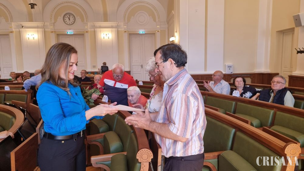 Administaţia orădeană a felicitat joi, 6 iunie, cele 27 de cupluri prezente în sala mare a Primăriei Oradea, la evenimentul „Nunta de Aur”.