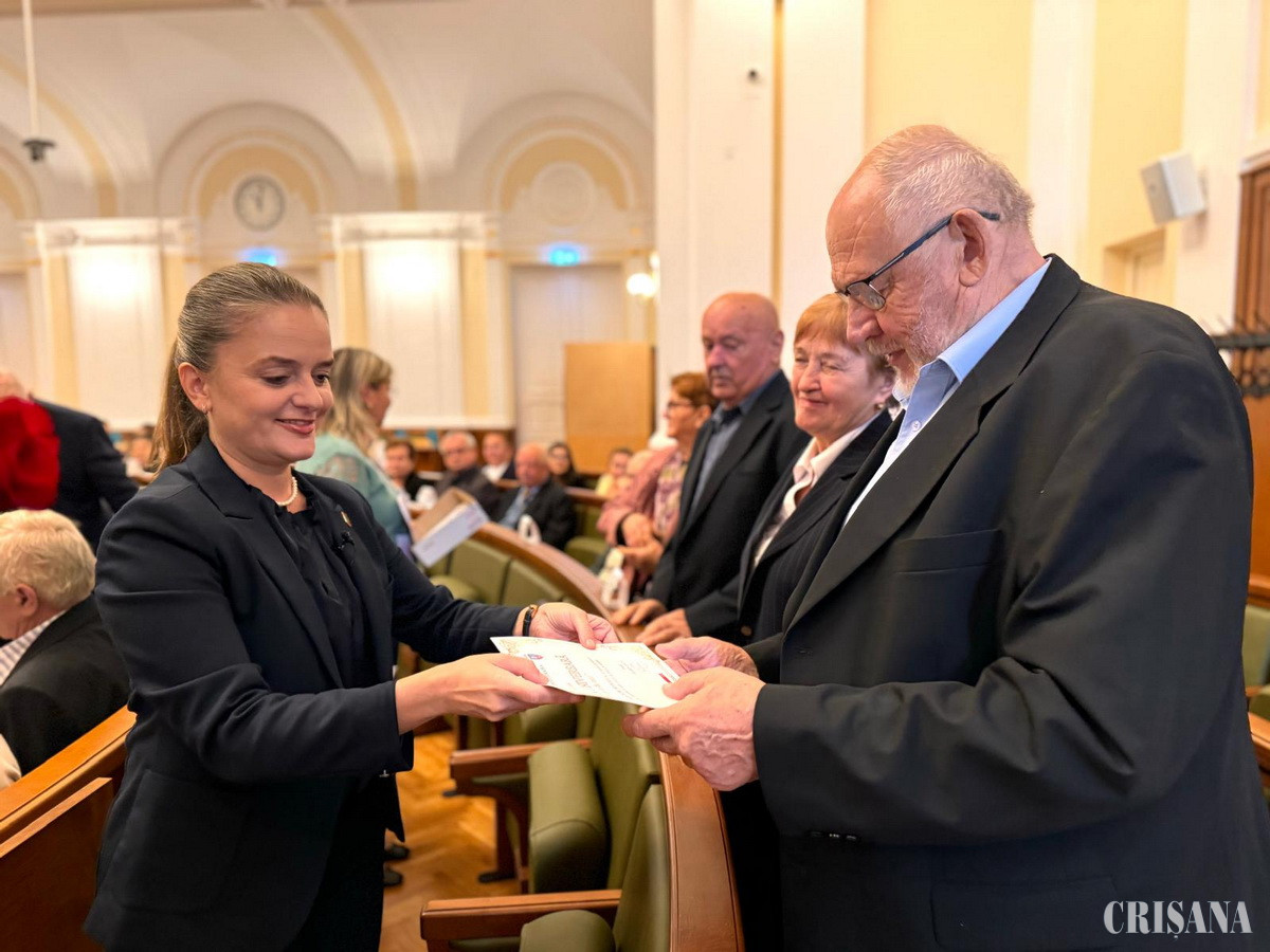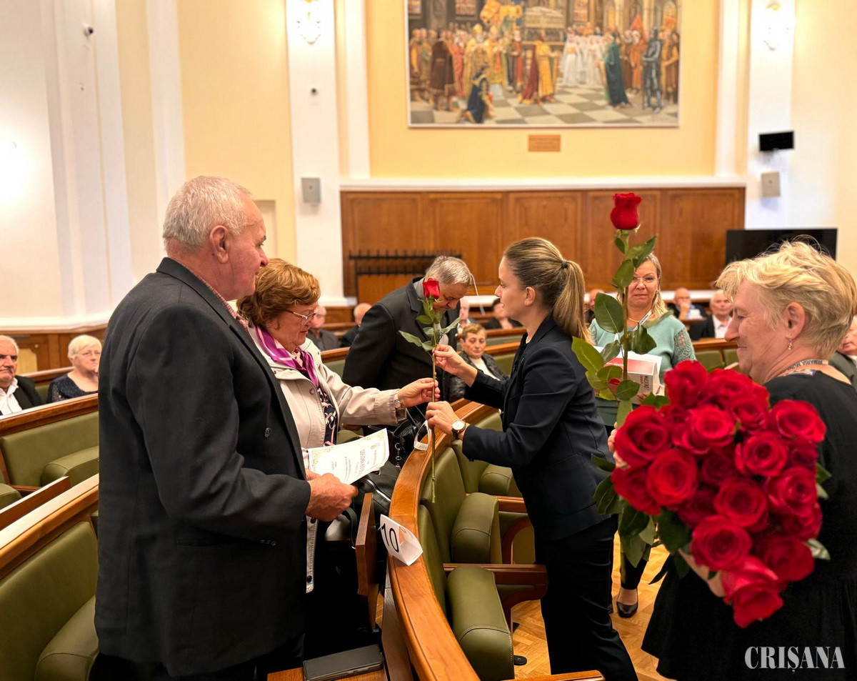 Viceprimarul Antonia Nica a felicitat marți, 17 septembrie, 30 de cupluri prezente în sala mare a Primăriei Oradea, la evenimentul „Nunta de Aur”. Fiecare pereche a primit o diplomă aniversară, însoțită de flori și de un premiu în bani, în cuantum de 1.000 lei.