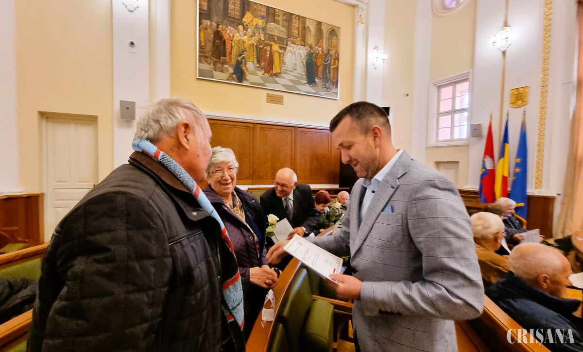 În Sala Mare a Primăriei Oradea, 24 de cupluri au fost sărbătorite miercuri, 1 octombrie, cu ocazia celei de-a zecea ediţii din acest an a evenimentului „Nunta de Aur”.