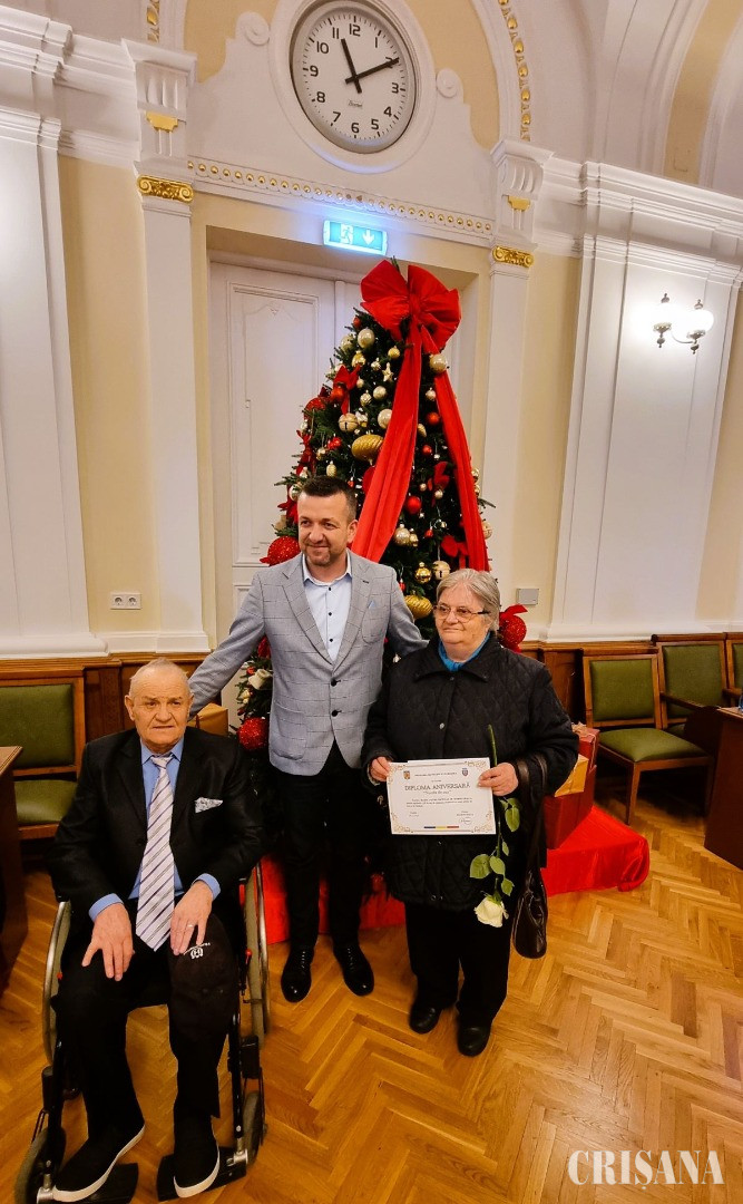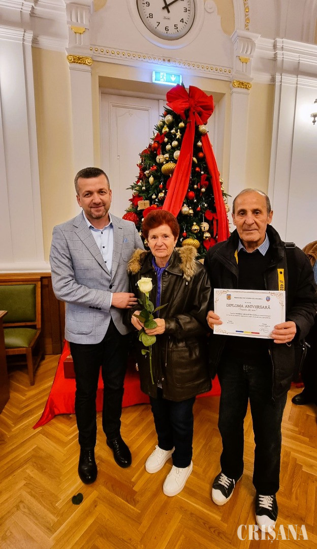 „Dragi sărbătoriți, onorate familii, ne aflăm astăzi aici pentru a marca un eveniment deosebit, un simbol al statorniciei: Nunta de Aur. 50 de ani de căsnicie nu sunt doar o realizare extraordinară, ci și o dovadă vie a devotamentului, a respectului reciproc și a unei povești de viață clădite cu răbdare, înțelepciune și sacrificii. Sunteți un exemplu pentru noi toți – pentru generațiile tinere care au nevoie să înțeleagă că adevărata fericire vine din construirea unei vieți împreună, din momentele împărtășite, din bucuriile, dar și din provocările depășite cu răbdare și iubire. Vă mulțumesc tuturor și vă felicit din inimă pentru această realizare extraordinară!”, le-a transmis viceprimarul Teofil Filimon.