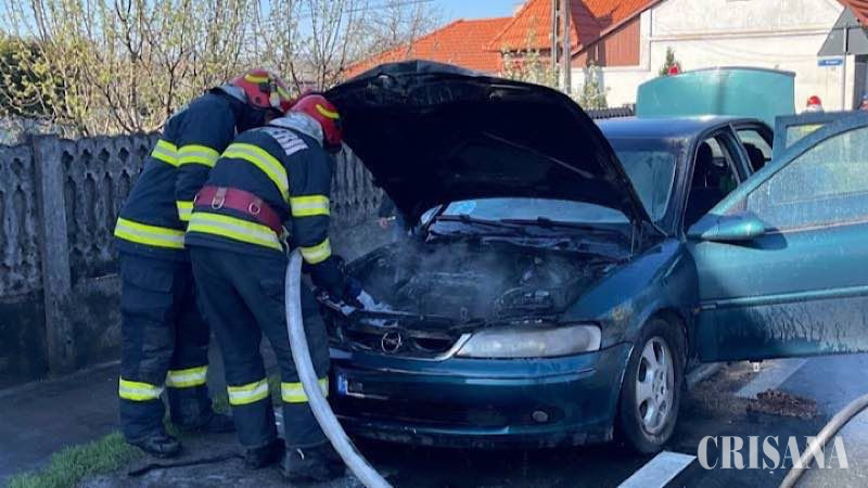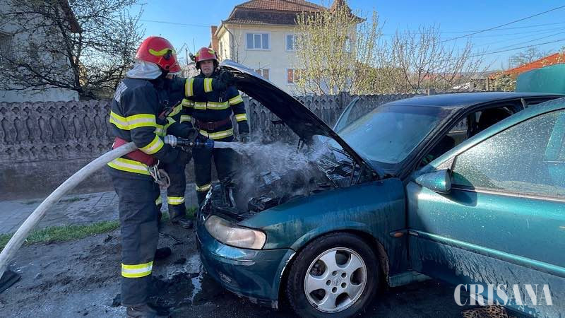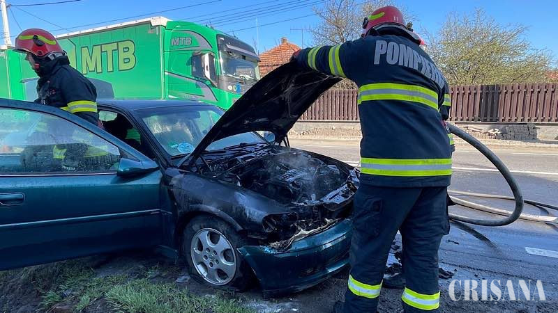 Un autoturism a luat foc în mers, marţi dimineaţa, pe o stradă din localitatea Aleșd, cel mai probabil din cauza unui scurtcircuit.