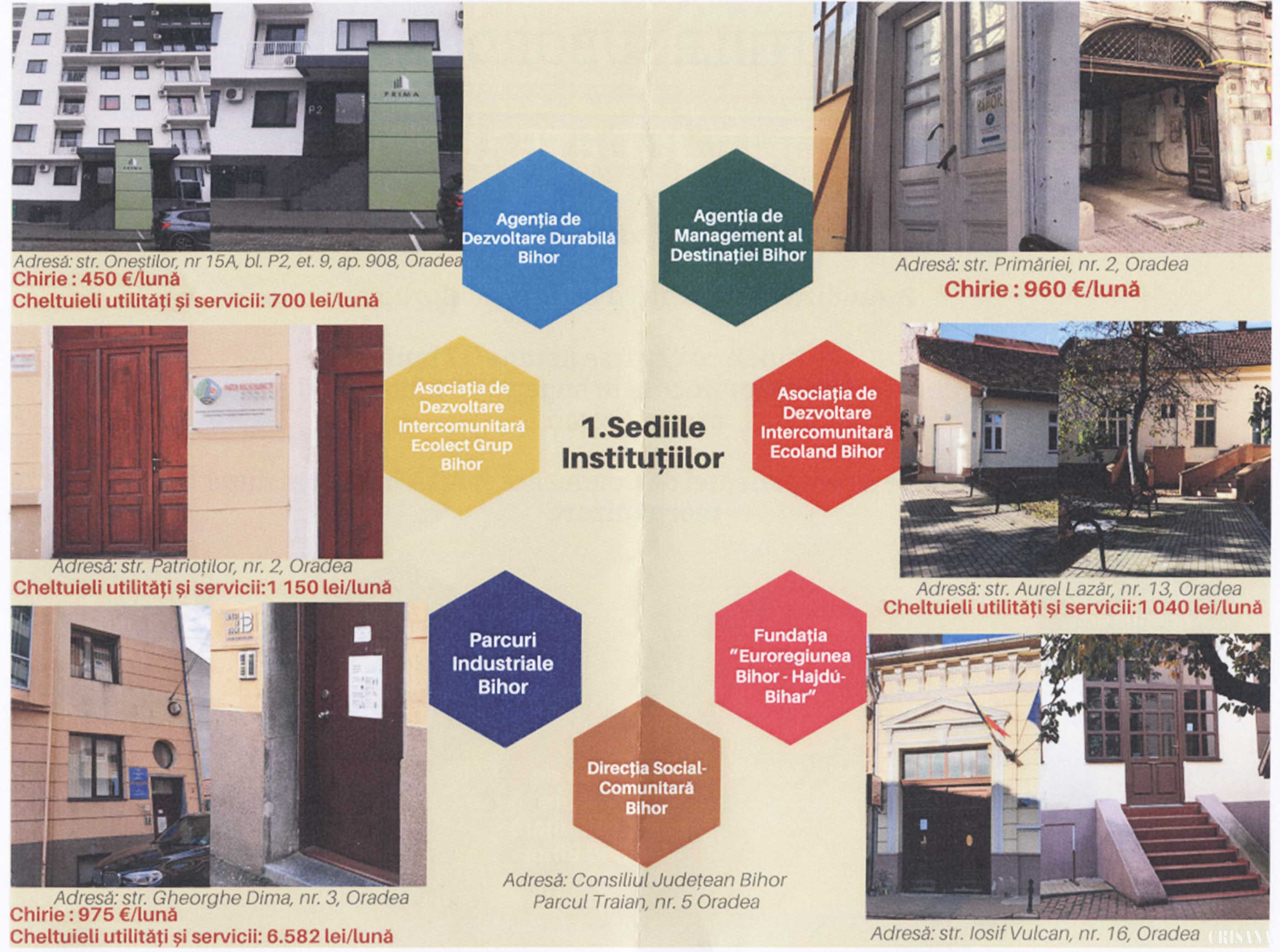 Călin Gal, vicepreședintele Consiliului Județean Bihor a prezentat situaţia a două dintre aceste două instituţii: ADI Ecoland şi ADD. În cazul Ecoland, care gestionează staţia de biomasă de la Săcueni care ar trebui să producă energie electrică, vicepreşedintele CJ a menţionat că aceasta avea 18 angajaţi, din care şapte lucrau efectiv la staţie, iar la birourile din Oradea erau 11 angajaţi. În plus, staţia de la Săcueni, realizată din fonduri europene, nu mai funcţionează de câteva luni din cauza unor avarii, fiind nevoie de 300.000-400.000 euro pentru repornirea activității. Totodată, staţia ar fi trebuit să producă, anual, din din dejecţii, porumb şi secară, 4.457 MW, dar în primul an după punerea în funcţiune, 2016, a produs doar 3.680, în 2017 şi 2018 doar 3.000, în 2019 doar 2.200, iar în acest an doar 229 MW. În ceea ce priveşte Agenţia de Dezvoltare Durabilă, Gal a menţionat că lucrările la bazinele didactice de înot din judeţ (Salonta, Beiuş, Valea lui Mihai, Marghita, Ştei, Nucet, Săcueni) sunt mult întârziate, termenele de predare fiind depăşite, însă nicio investiţie nu e finalizată. Asta deşi bani există pentru aceste lucrări. La fiecare dintre proiecte, însă, a fost actualizată data de finalizare a lucrărilor cu o prelungire de până la un an. Preşedintele CJ Bihor, Ilie Bolojan, a menţionat că, în perioada următoare, vor fi luate măsuri pentru urgentarea lucrărilor „dacă avem cu cine”, altfel „vom lua măsurile de rigoare”.
