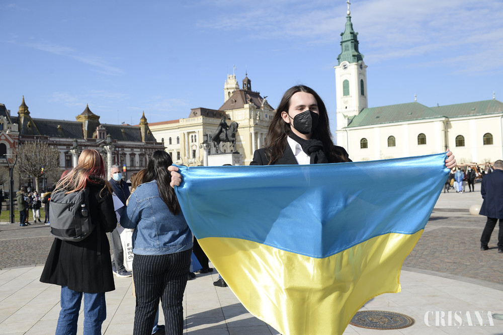 O adunare publică în semn de solidaritate cu Ucraina a fost organizată în Piața Unirii din Oradea.
