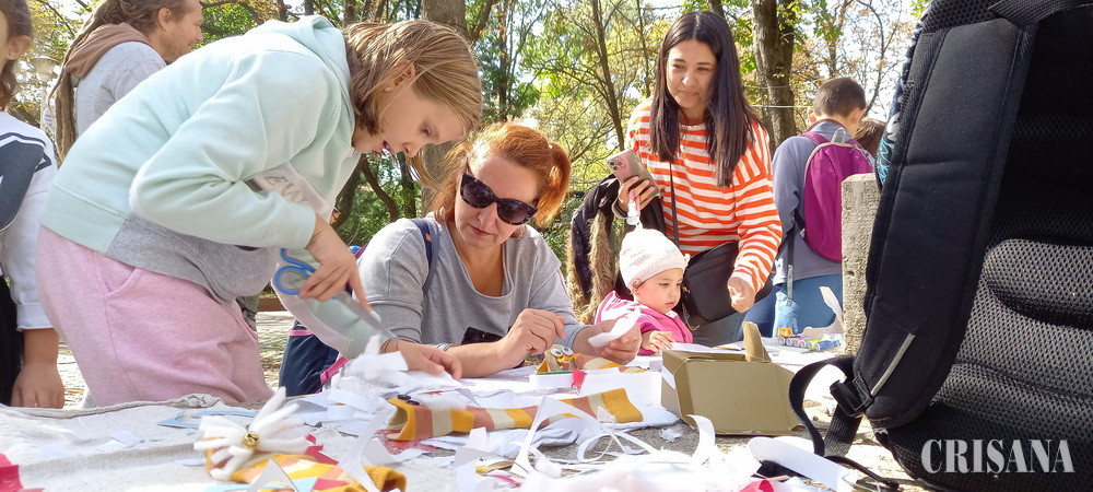 Bucurie mare pentru copii, sâmbătă, 24 septembrie, în Parcul Libertății. Pe o vreme frumoasă, cu soare generos, în jurul statuii lui Szacsvay Imre, micuții au învățat, de la instructorii Asociației Grund Community, să facă șosete vorbitoare.