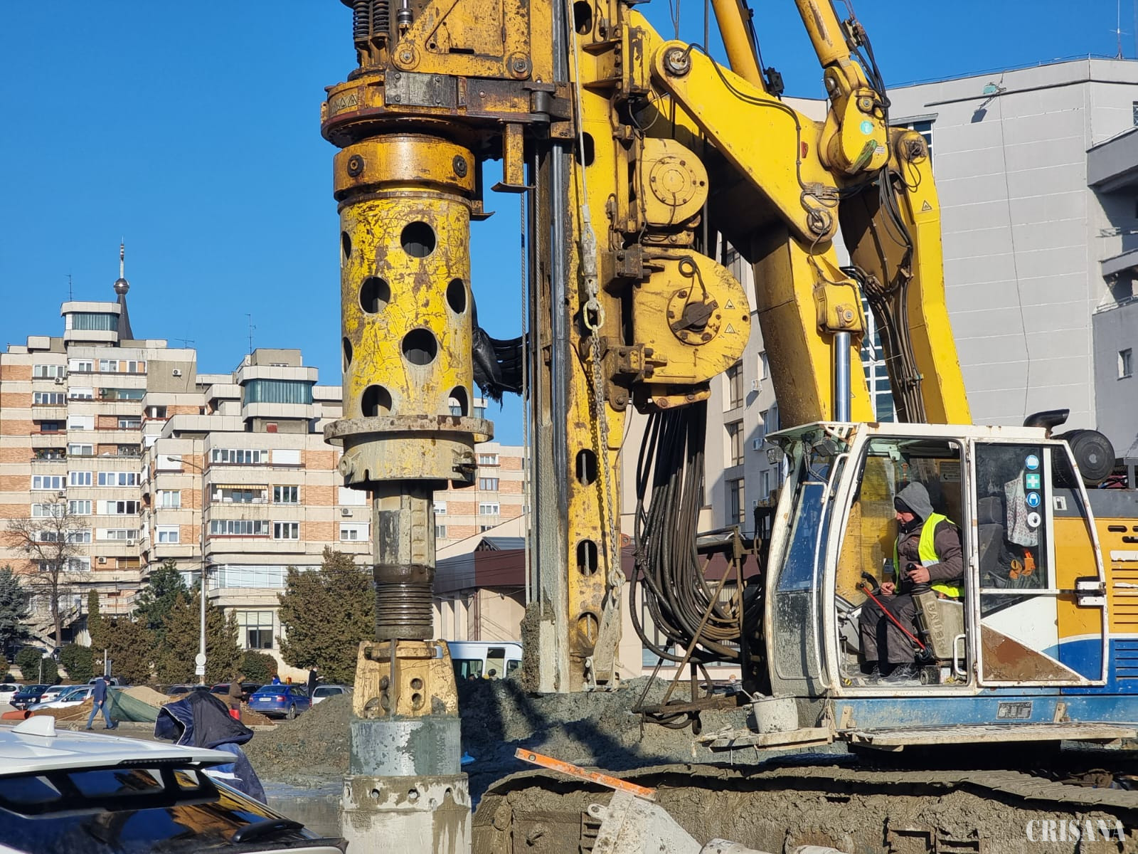 Procesul de forare a celor 86 de piloți aferenți pasajului rutier din Piața Cetate a fost finalizat ieri. În ciuda vremii dificile, constructorul lucrează la zidul de sprijin pentru susținerea trotuarului din dreptul blocului Cicero. Betonul este încălzit pentru a fi respectate normativele din domeniul construcțiilor.