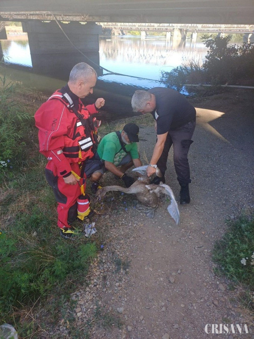 Pompierii militari orădeni au salvat, luni dimineaţa, un pui de lebădă parțial imobilizat de firul nailon al unei undițe, pe apele Crișului Repede, în zona Podului Ovid Densușianu.
