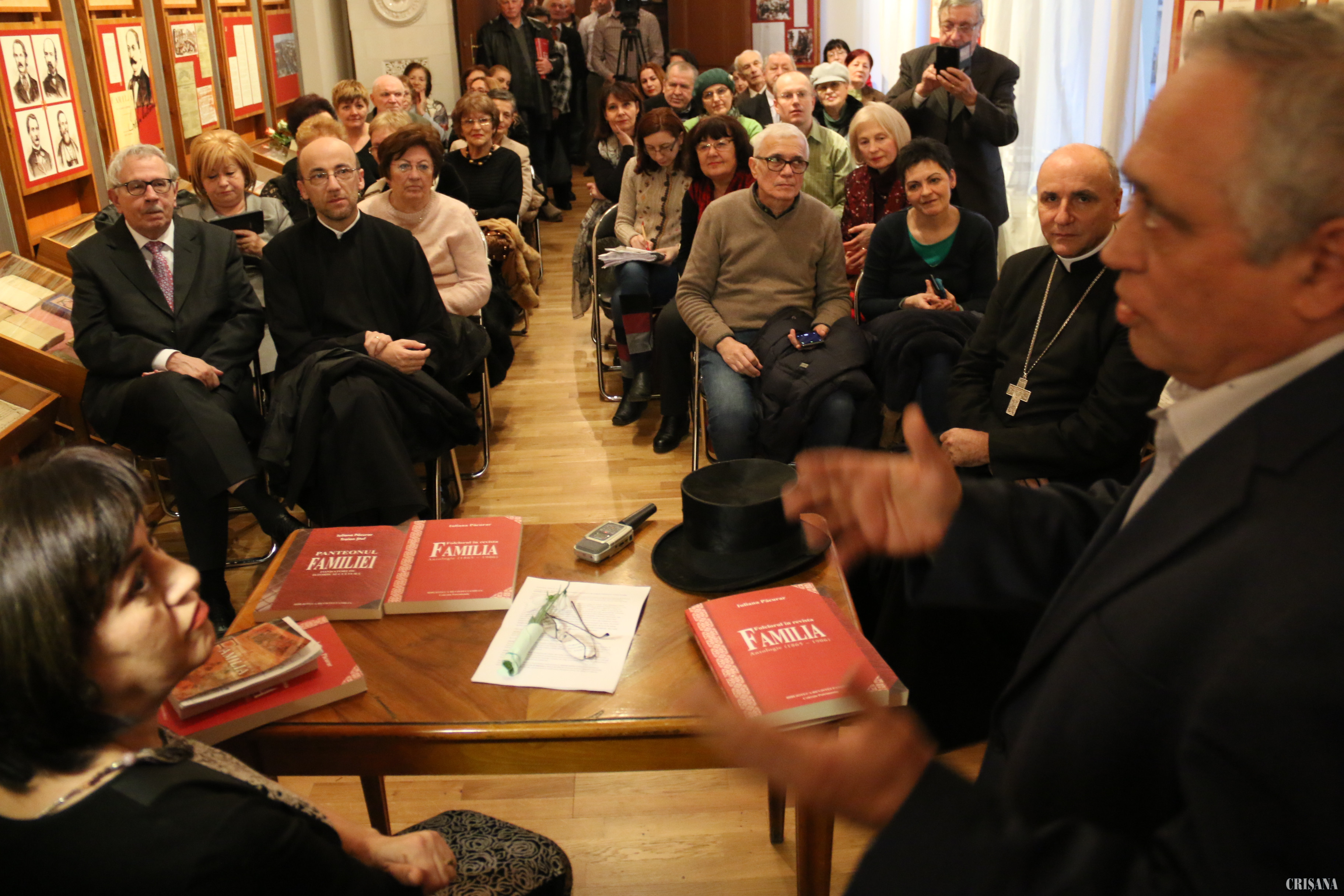 Muzeul Memorial „Iosif Vulcan” s-a dovedit neîncăpător, marţi seara, 23 ianuarie, cu prilejul lansării primelor două cărţi din Colecţia Patrimoniu, iniţiată în anul 2017: „Panteonul Familiei” şi „Folclorul în Revista Familia Antologie 1865 - 1906”. Gazda evenimentului a fost Aurel Chiriac, directorul Muzeului Ţării Crişurilor. „Începem seria de manifestări dedicate Centenarului cu această lansare de carte. În aceste zile vom descinde la Mădăras, apoi la Gepiu, unde îi vom onora pe cei care au participat la Alba Iulia, apoi, tot anul, vom merge în toate localităţile care au trimis delegaţi la Marea Unire”, a subliniat Aurel Chiriac. Directorul Revistei Familia, Ioan Moldovan, a subliniat că aceste două cărţi sunt practic „cărţi eveniment”. Volumul „Panteonul Familiei”, care îi are ca autori pe Iuliana Păcurar şi Traian Ştef, reuneşte toate portretele unor personalităţi contemporane cu Iosif Vulcan, ale căror biografii le-a publicat în fiecare număr al Revistei Familia timp de 42 de ani, începând cu anul 1865. „De ce aceşti oameni sunt nişte personalităţi? Pentru că au două virtuţi importante: stăruinţa în a face bine, nu pentru sine, ci pentru ceilalţi şi curajul de a face lucruri fundamentale”, a subliniat Traian Ştef. Subliniind rolul major pe care Iosif Vulcan l-a jucat în peisajul cultural românesc, Traian Ştef a propus realizarea unei statui în cinstea marelui cărturar bihorean. Iuliana Păcurar, iniţiatoarea proiectului „Panteonul Familiei”, a amintit că prin munca sa de şase ani nu a făcut decât să continue visul întemeitorului, Iosif Vulcan. „Panteonul reia şi continuă iniţiativa lui Vulcan, din 1869, de a culege în volum „viaţa bărbaţilor noştri, care, cu energie şi devotament, s-au sacrificat pentru deşteptarea naţiunii”. În cei 42 de ani de apariţie a revistei, Vulcan a publicat pe prima pagină sute de portrete ale unor personalităţi culturale, ştiinţifice, artistice. Am selectat pentru acest volum doar portrete ale transilvănenilor, bănăţenilor şi bucovinenilor. Am iniţiat proiectul din dorinţa de a readuce în atenţie aceste nume şi de a oferi generaţiilor de azi şi de mâine modele de construcţii intelectuale solide”, a subliniat Iuliana Păcurar. În acest „Panteon” regăsim biografii ale unor ierarhi ai bisericilor româneşti, dar şi teologi sau parohi, membri ai Academiei Române. Despre importanţa celui de-al doilea volum, „Folclorul în Revista Familia Antologie 1865 - 1906”, le-a vorbit celor prezenţi Crăciun Parasca, specialist în folclor. „E bine că se încearcă valorizarea acestei publicaţii. Despre ce a însemnat Revista Familia sunt multe de spus. Cele 500 de pagini reunesc 700 de titluri, texte superbe de folclor”.