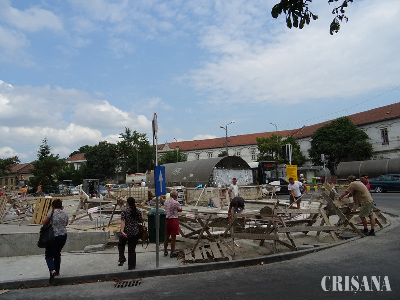 Până în momentul de faţă au fost realizate lucrările de reparaţii la canalizarea menajeră existentă, au fost realizate toate lucrările necesare (reţea, guri de scurgere, cămine) pentru asigurarea scurgerii apelor pluviale. Totodată, s-au executat toate lucrările necesare pentru alimentarea cu apă rece a obiectelor sanitare (branşament, cămin de apometru, racord) şi a fântânii de băut apă (cişmea). În perioada imediat următoare se va trece la următoarele lucrări: suprafaţa piaţetei va fi pavată cu porfir bej şi bej-maroniu, precum şi cu granit alb-auriu; suprafaţa trotuarului de pe strada Braşovului va fi pavată cu granit gri-deschis; la marginea dinspre str. Republicii se va monta un parapet, între parapet şi bordura de pe str. Republicii se va turna o fâşie de asfalt; pe str. Braşovului, între str. Republicii şi magazinul Crişul, se va realiza un zid de sprijin alcătuit din două părţi, despărţite de scările care fac legătura între str. Braşovului şi piaţetă; iluminatul public al piaţetei se va realiza cu ajutorul a 10 stâlpi de iluminat. Termenul de finalizare a lucrărilor este 20 august 2016, toate lucrările stabilite până acum fiind în grafic.