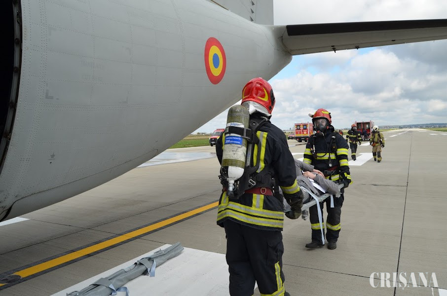 La Aeroportul Oradea (AO) s-a desfăşurat, marţi, 20 septembrie, un amplu exerciţiu cu forţe şi mijloace în teren, ce a vizat verificarea concepţiei de intervenţie pentru gestionarea unei situaţii de urgenţă de amploare, generată de producerea unui accident de aviaţie, precum şi verificarea personalului de conducere a intervenţiei în organizarea şi coordonarea forţelor de intervenţie.