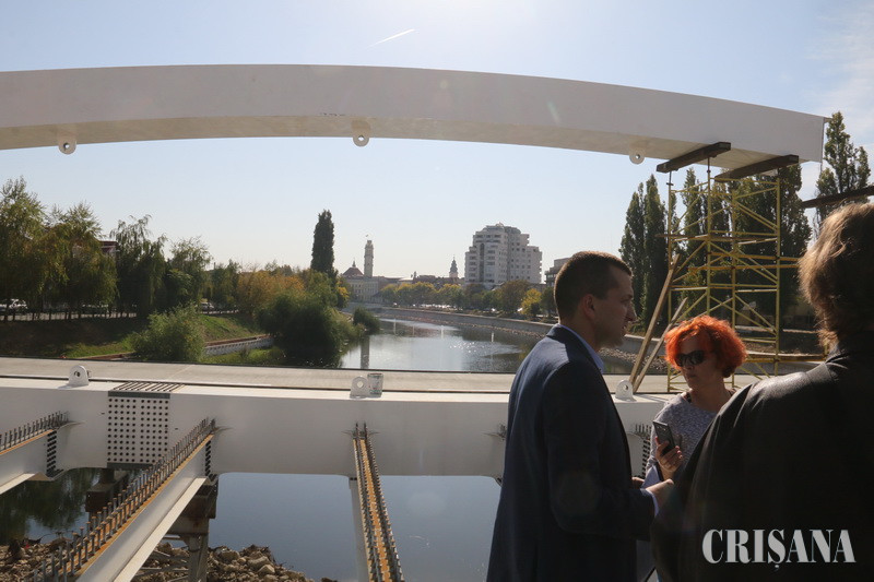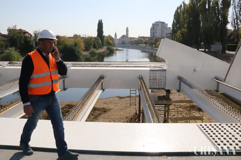 „A fost montat tablierul podului, care a fost adus pe bucăți. Peste tot au fost montate peste zece mii de șuruburi care susțin și care au prins acest pod”, a menţionat viceprimarul.