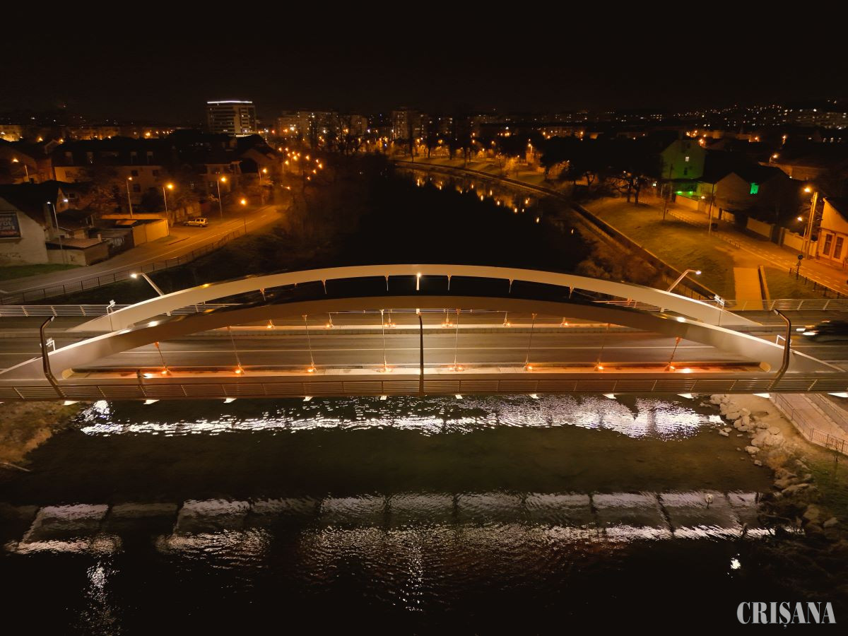 Podul Centenarului și pasajul intermodal de pe Calea Borșului, iluminate în portocaliu