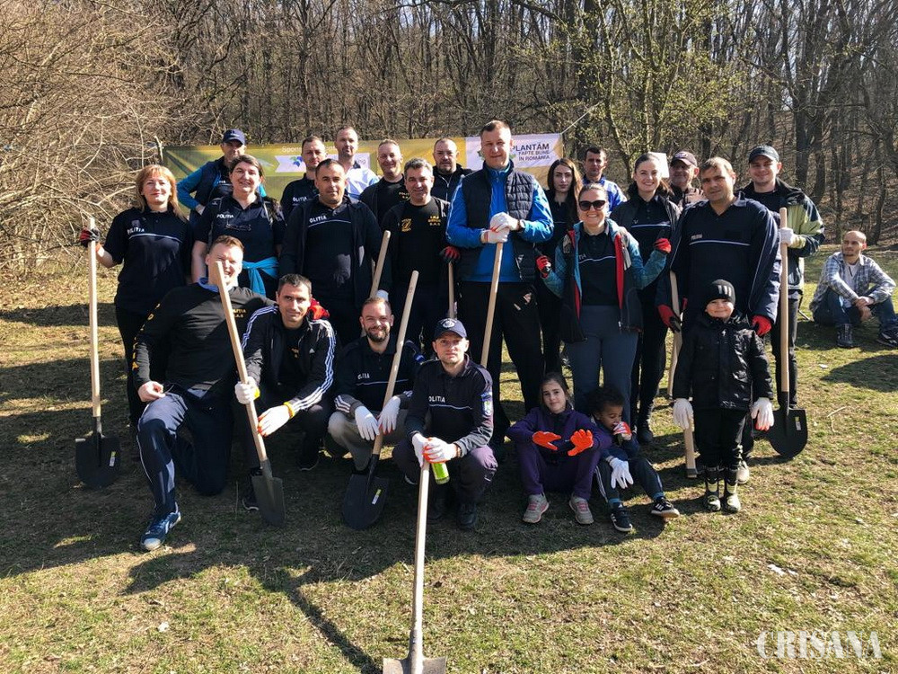 Polițiști și pompieri la sape - 2.800 de puieți plantați la Sârbi