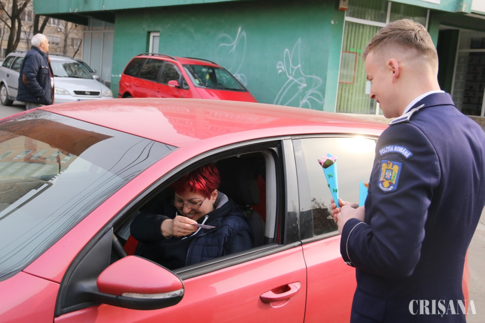 Continuând tradiţia anilor precedenţi, poliţiştii Compartimentului de Prevenire a Criminalităţii împreună cu polițiștii Biroului Drumuri Naționale și Europene – Serviciul Rutier și polițiștii Biroului Rutier – Poliția Municipiului Oradea din cadrul Inspectoratului de Poliţie Judeţean Bihor au acţionat în trafic în Oradea și pe toate drumurile naționale din județ, pentru a oferi doamnelor şi domnişoarelor participante la trafic mărţişoare cu mesaje preventive şi recomandări utile, marcând astfel, simbolic, ziua de 1 Martie. Cele peste 400 de mărțișoare au fost realizate de elevii de gimnaziu implicați în activitățile preventive desfășurate de polițiștii Compartimentului de Analiză și Prevenire a Criminalității în cadrul unor proiecte preventive. Peste 400 de elevi de la Școala Gimnazială „Ioan Slavici” din municipiul Oradea, de la Colegiul Național „Avram Iancu” Ștei, Școala Gimnazială „Miron Pompiliu” Ștei, Școala Gimnazială „Nicolae Bogdan” Vașcău, Școala Gimnazială nr.1 Roșia, Școala Gimnazială nr.1 Nucet, Școala Gimnazială nr.1 Săliște de Vașcău și Școala Gimnazială „Georgiu Popa” din Câmpani au creat și realizat mărțișoarele cu mesaje preventive. Mesaj precum „Stop accidentelor rutiere!”, „Centura de siguranță salvează vieți!”, „Nu da sms-uri la volan!”, „Atenție în trafic!”, „Fii atent la traversare!”, „Violența nu este o soluție!”, „Fii preventiv, alege siguranța!”, „Nu lăsa bunuri la vedere în autoturism!” sunt atașate mărțișoarelor create manual de copii iar pe spatele fiecarui mărțișor se regăsește numele copilului care l-a realizat și școala de unde acesta provine.