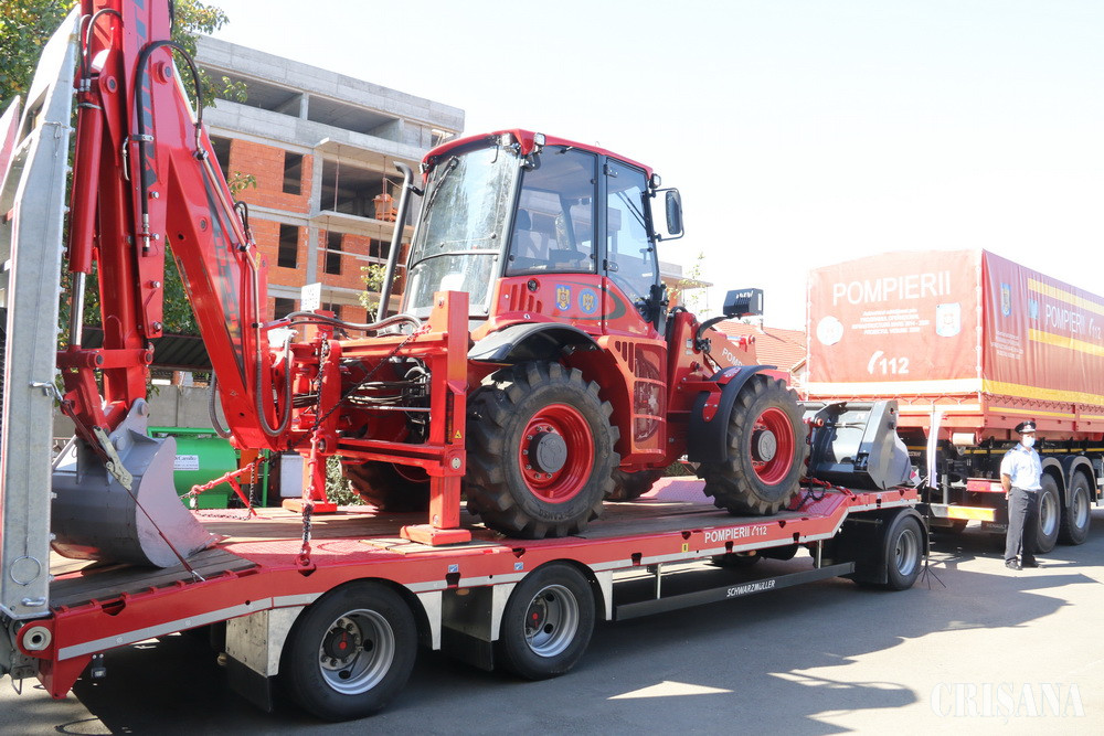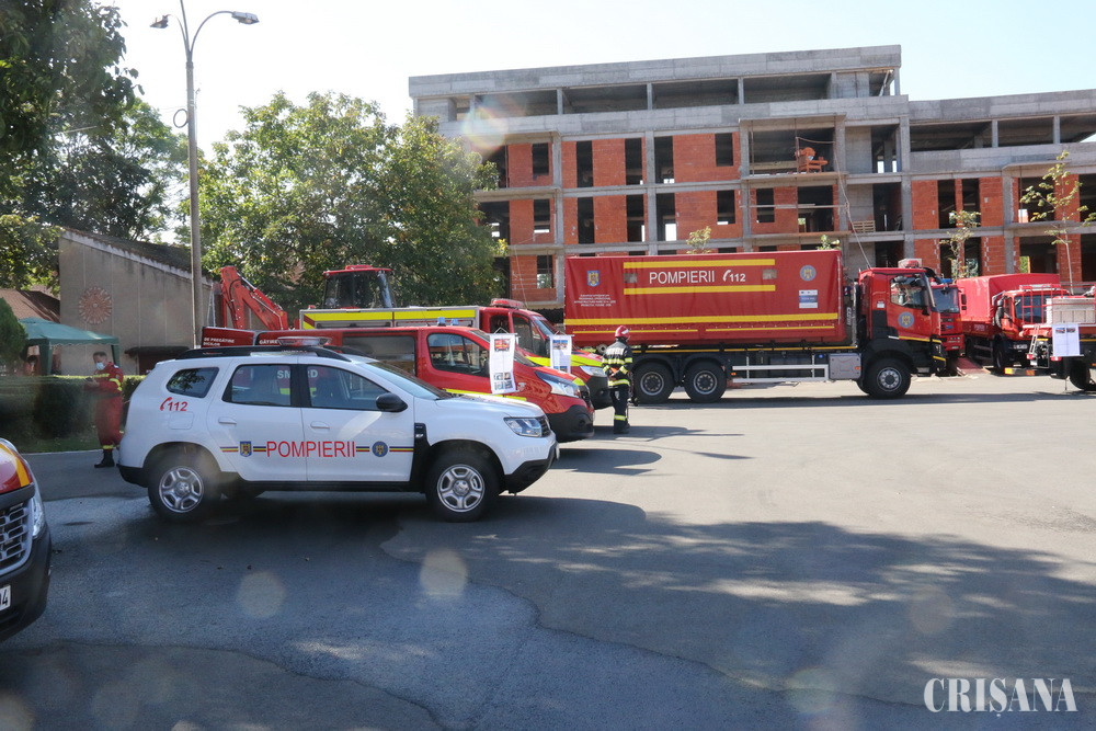 Anul acesta, prin distribuire de la IGSU, inspectoratului i-au fost repartizate două autocamioane de intervenție, două autospeciale pentru descarcerare, un buldoexcavator și remorcă trailer pentru transportul acestuia și o autospecială de primă intervenție și comandă. De asemenea, de la Fundația pentru SMURD a fost primită o autoutilitară – Centru mobil de instruire paramedici, iar din fondurile asigurate de CJ Bihor a fost achiziționat un container tip rezervor pentru transport apă, prevăzut cu o motopompă transportabilă și tun apă. „Ne-am stabilit pentru anul acesta mai multe obiective, printre care şi dotarea şi menţinerea în stare de activitate a autospecialelor existente. Peste 65% dintre autospecialele de stins incendii au peste 30 de ani, dar am reuşit să le menţinem funcţionale. Anul acesta am reuşit să achiziţionăm un container tip rezervor pentru transport apă, prevăzut cu motopompă transportabilă şi tun, unic în ţară. Ne-am inspirat din ce am văzut în alte ţări, a fost fabricat în România după un proiect pe care noi l-am gândit. Pe viitor dorim să avem cinci astfel de echipamente, distribuite la unităţile din judeţ”, a declarat col. Sorin Caba, inspectorul şef al ISU “Crişana”. Containerul Abroll este destinat pentru a transporta o cantitate de şapte mii de litri de apă necesară pentru stingerea incendiilor. Containerul are în componenţă un rezervor de apă, o scară fixă de acces pe rezervor, respectiv în partea din spate o platformă pe care este amplasată o motopompă transportabilă împreună cu instalaţia aferentă pentru alimentarea acesteia din rezervorul de apă. Instalaţia care face legătura între rezervorul de apă şi motopompa transportabilă este astfel realizată încât să permită alimentarea rezervorului atât din surse naturale de apă, fără presiune, din surse sub presiune, precum şi utilizarea de către motopompă a apei stocate în rezervor, funcţie de necesităţile operaţionale.