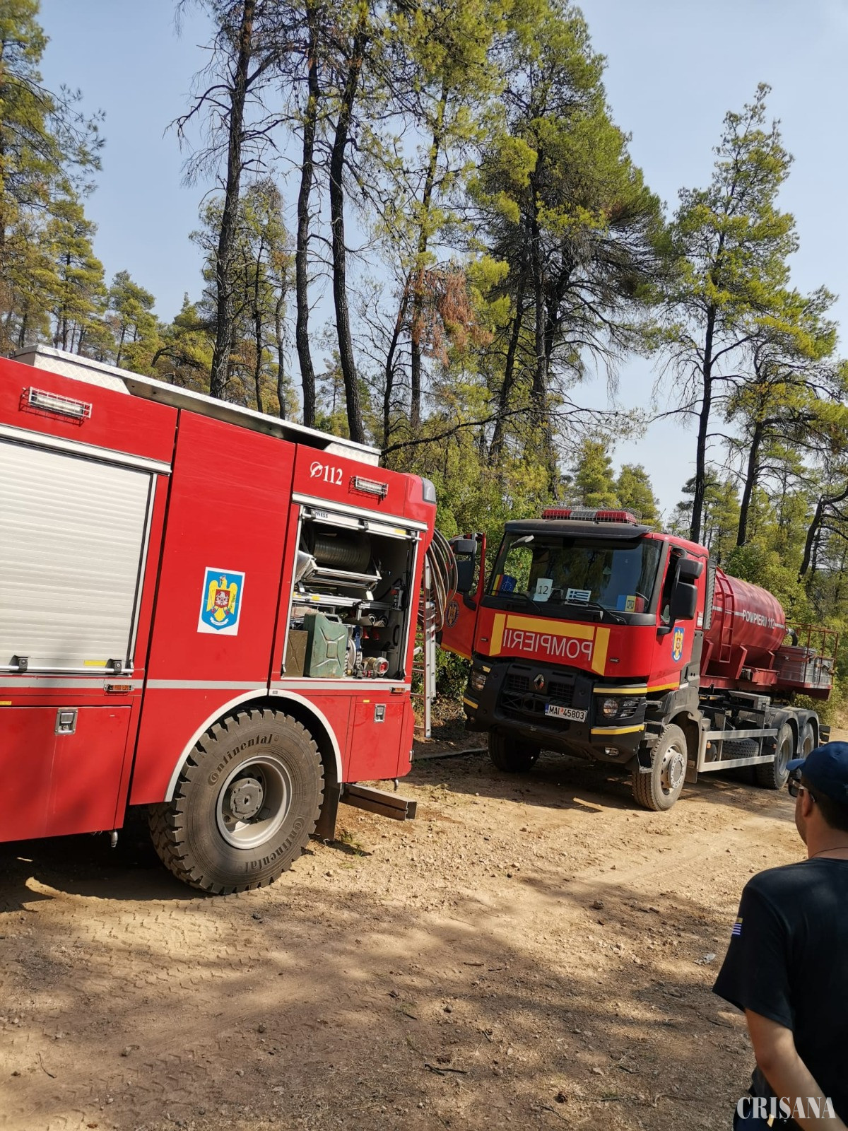 În țara elenă, când s-au apropiat de zona afectată, au văzut „pe viu” dimensiunile dezastrului: totul în jur era ars, soarele era acoperit de nori groși de fum, iar zona verde dintre sensurile de mers ale autostrăzii erau pârjolite, toate acestea semnalându-le intensitatea și amploarea situației pe care urmau să o înfrunte, alături de pompierii eleni, precum și greaua încercare pe care o trăiau comunitățile afectate.