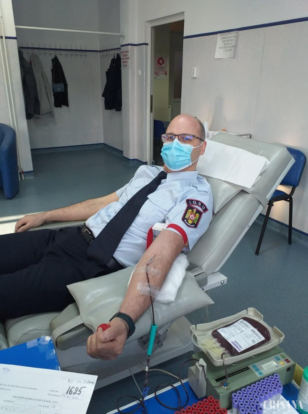 Potrivit Inspectoratului pentru Situaţii de Urgenţă „Crişana” al judeţului Bihor, pompierii s-au alăturat, vineri, campaniei „Donează sânge, fii erou!”, alegând să-și ajute semenii printr-o nouă acțiune de donare de sânge, un demers extraprofesional al cărui scop se identifică cu cel al profesiei pe care și-au ales-o: salvarea de vieți omenești. Confruntându-se, în mod direct, pe timpul operațiunilor executate, cu suferinţa oamenilor, pompierii militari au ales, să-i ajute și în acest mod, pe cei a căror sănătate și viață depinde de donarea de sânge. Gestul lor continuă seria acestor intervenții salvatoare, derulate constant, de-a lungul anilor, de personalul Inspectoratului pentru Situaţii de Urgenţă „Crişana” al judeţului Bihor, demonstrând astfel faptul că, există numeroase moduri, cel în cauză accesibil oricărei persoane sănătoase, de a prețui viața. Pompierii militari speră ca gestul lor și al tuturor celorlalți donatori să mobilizeze cât mai mulți bihoreni în această nobilă misiune și fac precizarea că, pentru a eficientiza procesul de donare, Centrul de Transfuzie Sanguină Oradea vă invită să vă programați în ziua și la ora dorită, folosind aplicația BlooDoChallenge, menționând faptul că înscrierea durează doar câteva minute și vă oferă prioritate la donare.