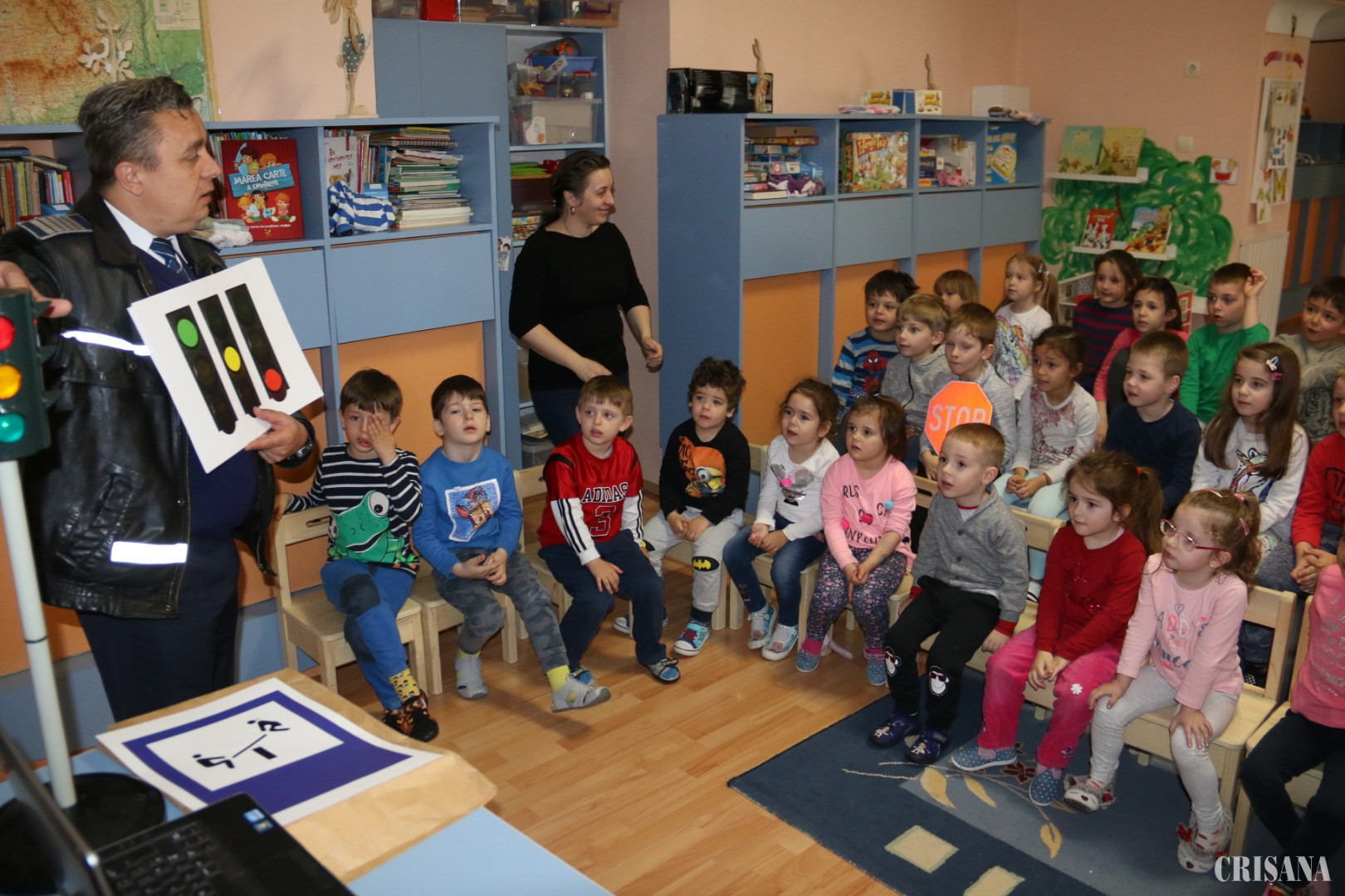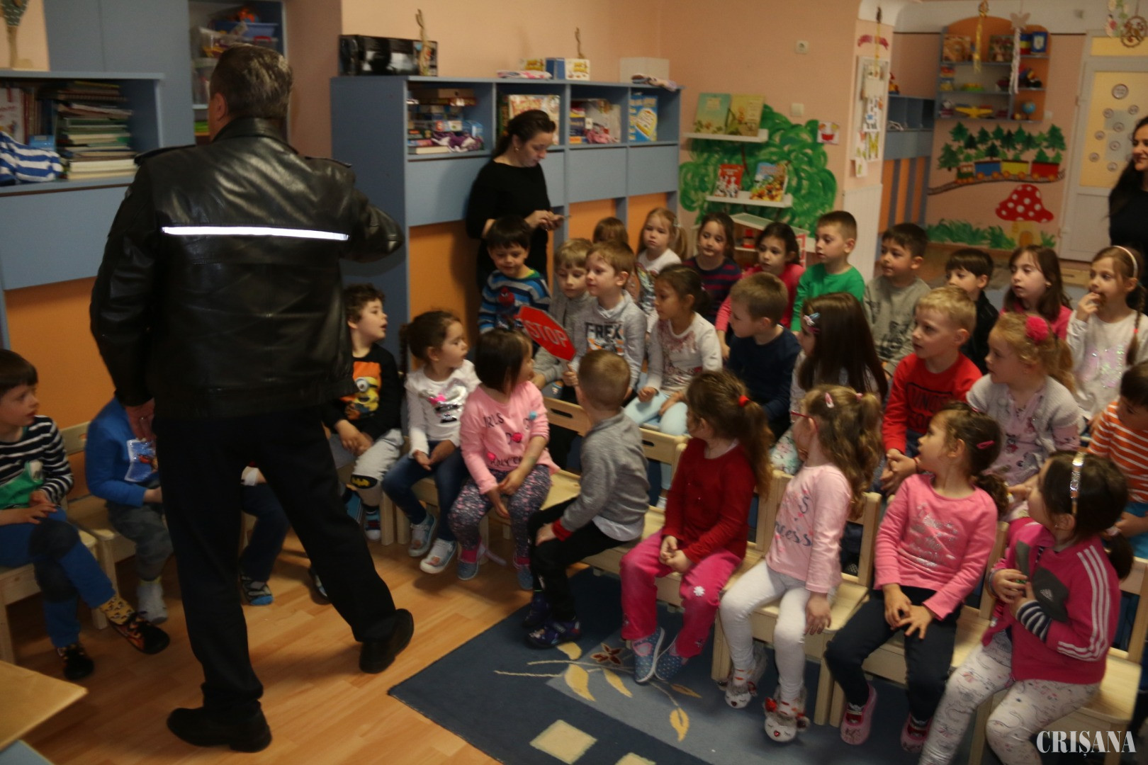 Poliţiştii orădeni au susţinut, ieri, o lecţie interactivă de educaţie rutieră la Grădiniţa nr. 49, structură a Grădiniţei cu program prelungit nr. 30 din Oradea.