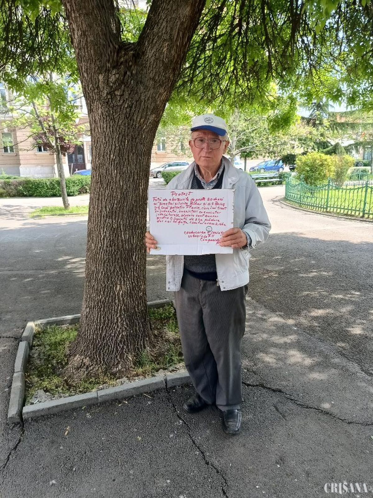 Nicolae Roşu are 70 de ani şi este preşedintele Asociaţiei Urbariale „Fii” din Cîmpani de Pomezeu, care are 28 de membri, proprietari de pădure. Bărbatul a protestat paşnic în faţa Prefecturii Bihor, exprimându-şi în felul acesta nemulţumirile faţă de Ocolul Silvic Beiuş.