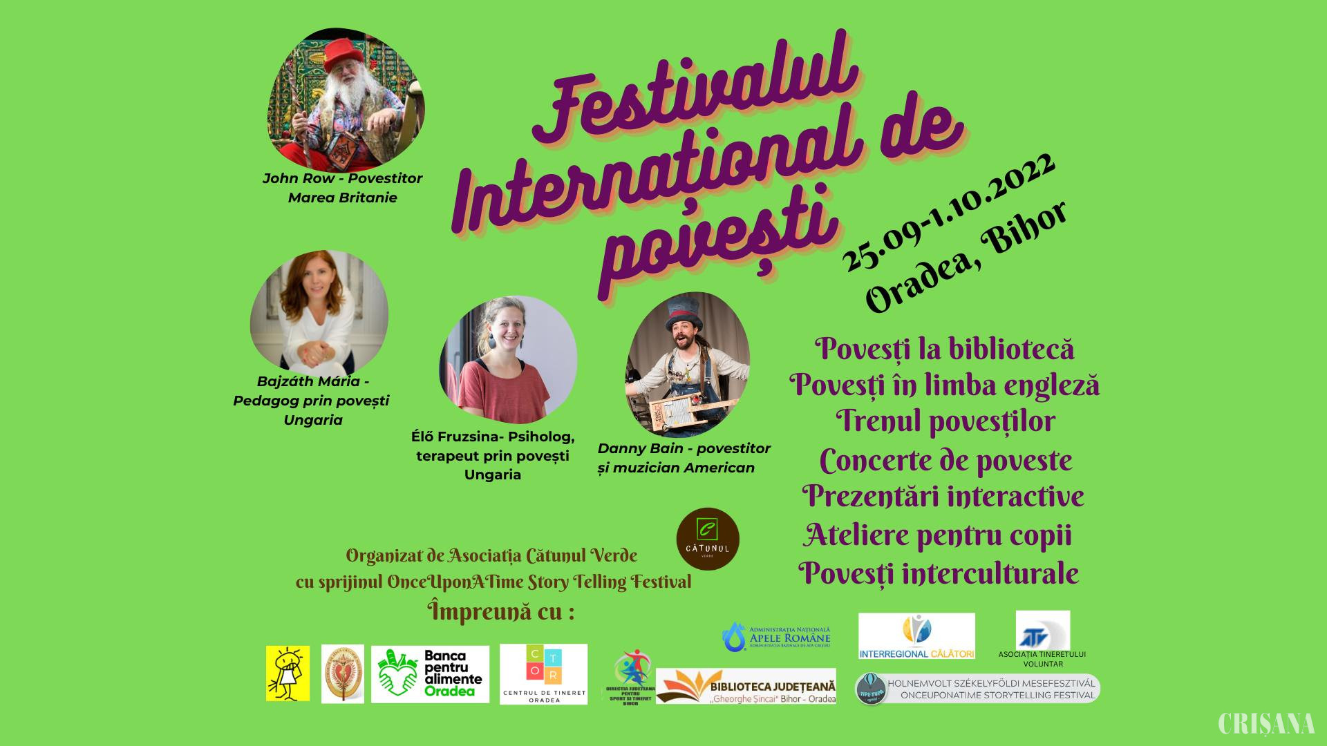 Asociația Cătunul Verde invită bihorenii la prima ediție a Festivalului Internațional de Povești care va avea loc în perioada 25 septembrie - 1 octombrie în Oradea și în alte localități din Bihor.
