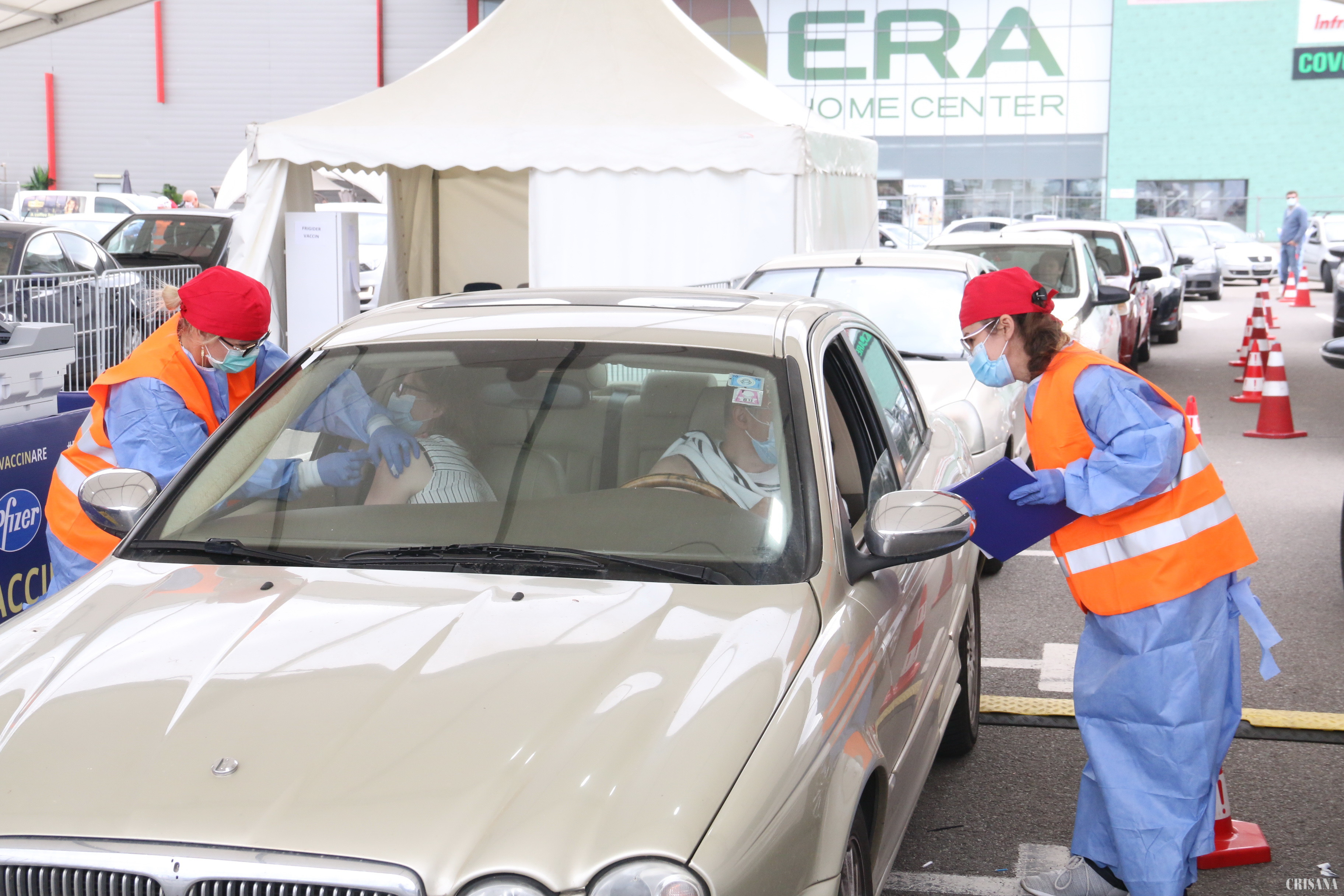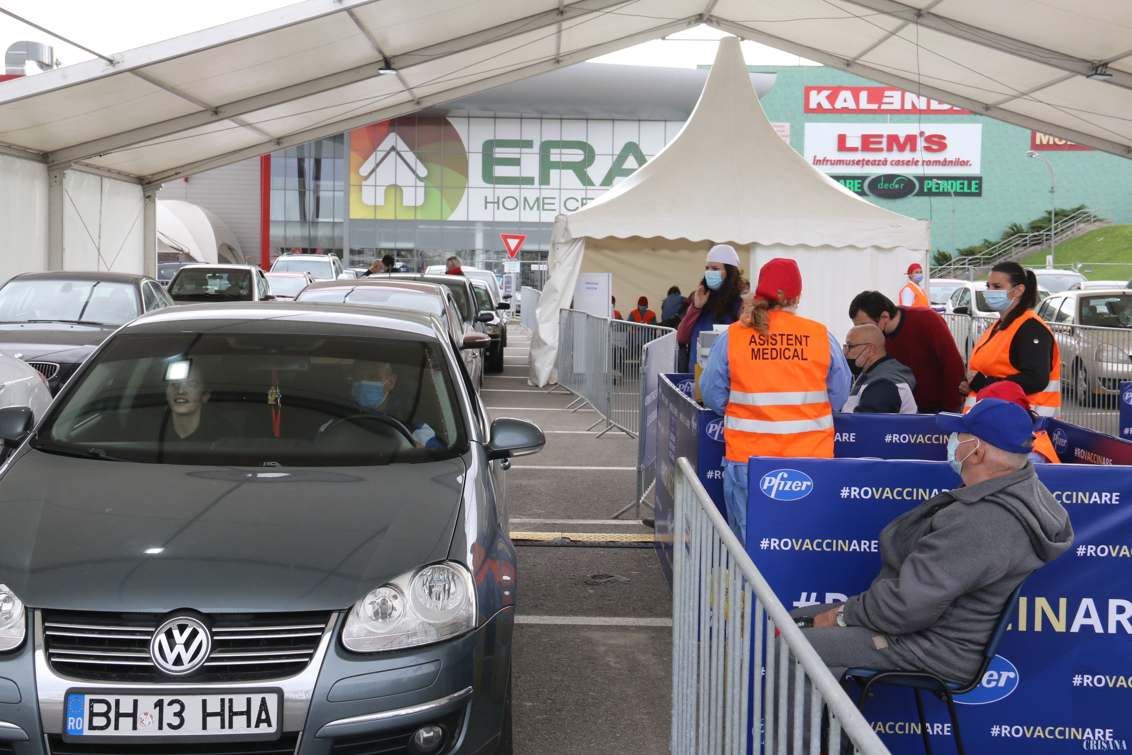 Centrul de vaccinare „drive-through” s-a deschis ieri dimineață, la ora 8.00, în parcarea de la Era Shopping Park, în fața Mobexpert, când mai multe mașini așteptau în coloană să le vină rândul. Programul centrului este zilnic, de luni până duminică, între orele 8.00 - 20.00 iar la el se pot vaccina și persoanele din județ sau aflate în trecere.