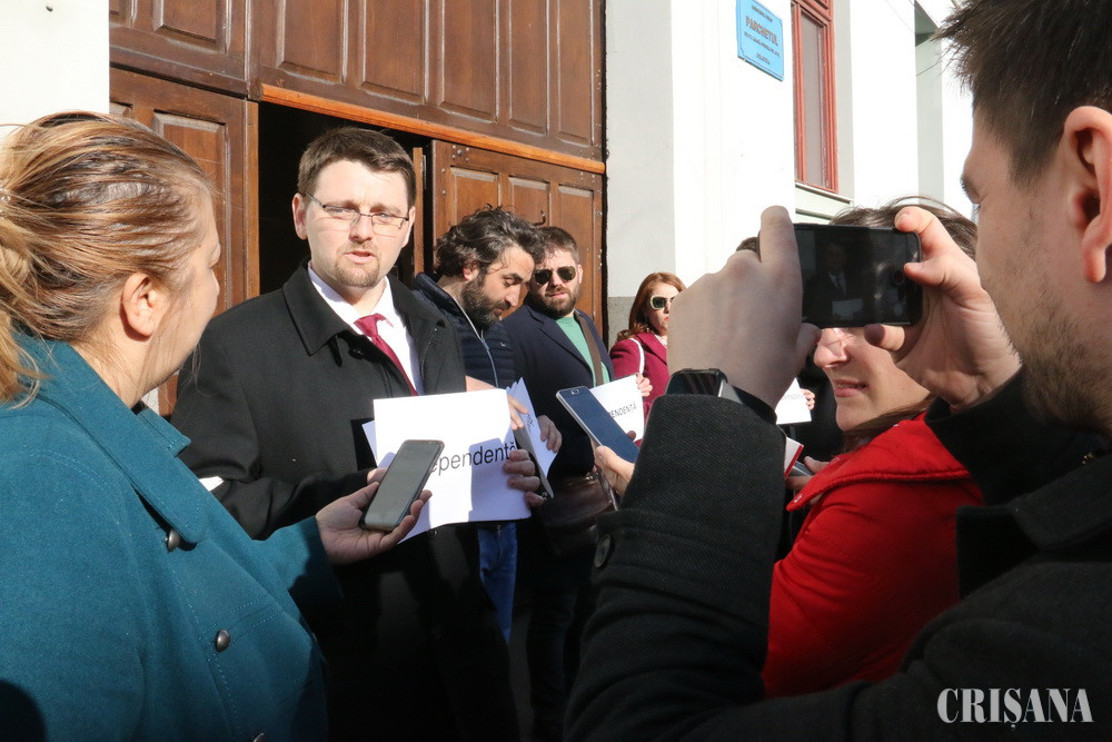 Magistraţii care au decis să iasă în faţa sediului de pe strada Aurel Lazăr, ieri, în semn de protest, au purtat banderole albe şi au ţinut în mâini foi A4 cu mesajul „Independenţă”.