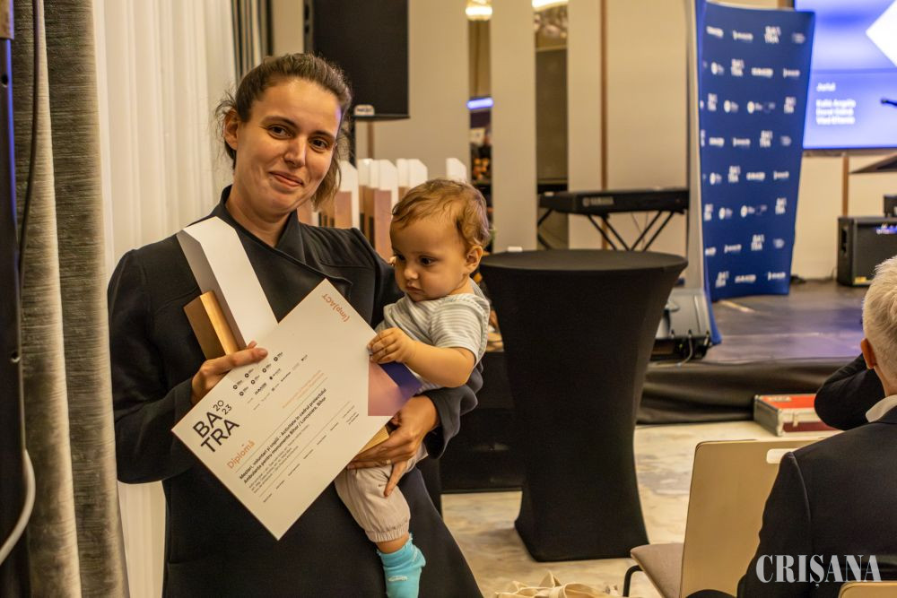 Două premii au mers către proiecte ale Ambulanței pentru Monumente (Bihor), autoarea lor primind trofeele cu un bebeluș de zece luni în brațe.