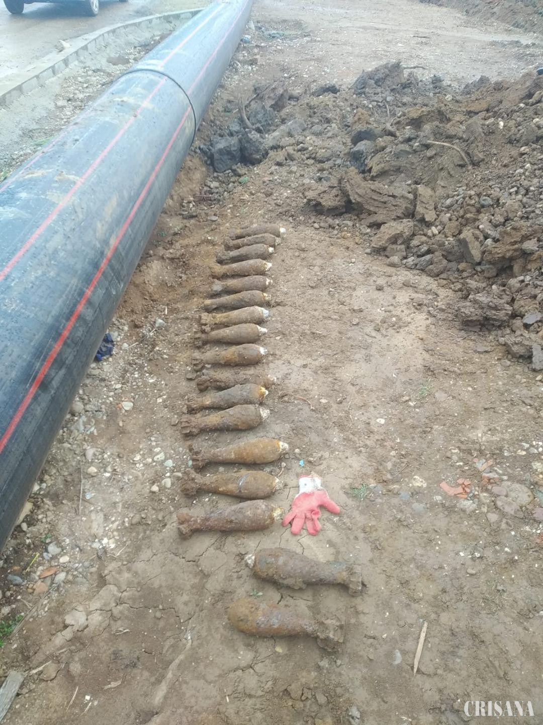 Proiectile descoperite de muncitorii care lucrau la o rețea de canalizare - Zeci de bombe de artilerie
