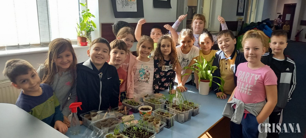 La finele săptămânii trecute, elevi din ciclul primar de la câteva dintre şcolile orădene înscrise în programul Plantropolis au profitat de zilele însorite şi au pregătit bacuri pentru viitoarele grădini de flori şi de legume din curtea Bibliotecii Judeţene Gheorghe Şincai.