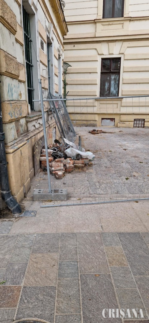 Clădirea emblematică a orașului a fost construită în 1894 dar a ajuns să fie bătaia de joc a unei societăți comerciale ce are sediul social într-o comună din județul Satu Mare. Lucrările de refacere sunt cofinanţate de municipalitate prin „Programul multianual de refacere a clădirilor situate în ansamblul urban - Centrul istoric Oradea", demarat în anul 2014. Deci Primăria Oradea, în urma unei licitații și, bănuim, unor verificări temeinice asupra seriozității firmei constructoare, a decis că e oportun să atribuie proiectul societății sătmărene. Din păcate însă, după un an în care practic nu s-a făcut mai nimic, Avasi Prodcom și-a adunat schelele și a plecat după două somații făcute de către municipalitate vis-a vis de necomformitatea și tempoul lucrărilor. Mai mult, constructorii au lăsat și mormane de moloz în urma lor care zac de mai bine de două săptămâni pe promenda de pe malul Crișului, în inima Oradiei. În plus mașini care aparțin firmei constructoare care a abandonat lucrarea, dar care mai are un proiect de același gen în vecinătate, parchează zilnic de dimineață până seară în zona pietonală (!). „Nu mai vorbim despre dezastrul lăsat în curte, burlane neconectate și alte resturi. Umpluseră curtea de moloz... Cât despre refacere, ce e de spus, au încercat să replice cărămida cu plăci de la Dedeman.... Lucrări de mântuială cu firme de dormitor”, spune un locatar.