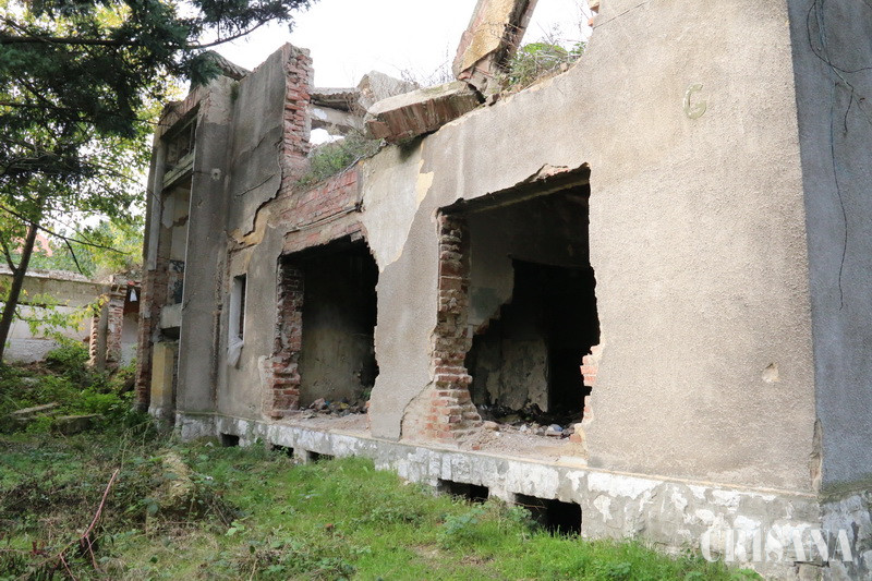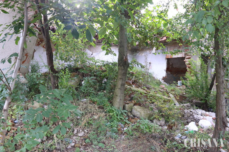 Tavanele sunt jumătate căzute, iar cealaltă jumătate, gata să se prăbușească în orice moment. O grindă mare de beton se mai sprijină într-un fir de fier beton înainte să cadă în curte de la etajul întâi.