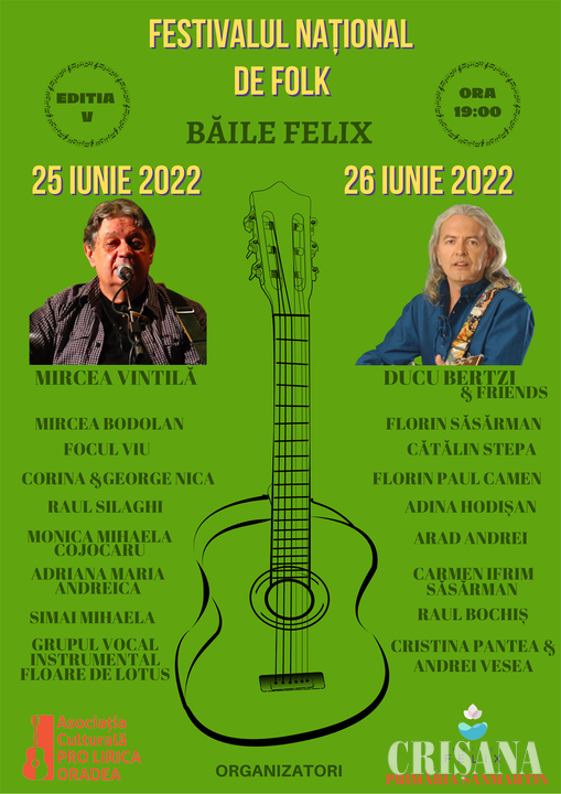 Duminică, 26 iunie: Cristina Pantea și Andrei Vesea (Sânmartin); Raul Bochiș (Oradea); Carmen Ifrim Săsărman (Ștei); Andrei Arad (Oradea); Adina Hodișan (Oradea); Florin Paul Camen (Hunedoara); Cătălin Stepa (Hunedoara); Florin Săsărman (Bistrița); Ducu Bertzi & Friends (București). Toți cei interesați sunt așteptați cu drag la eveniment.