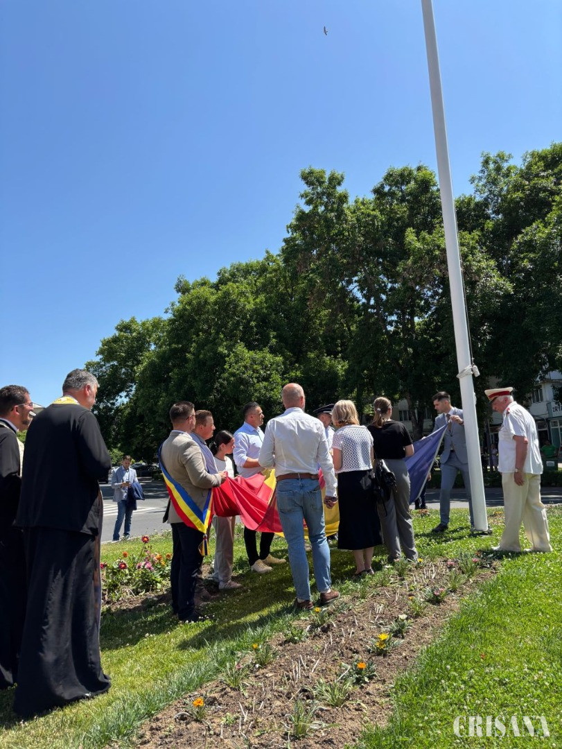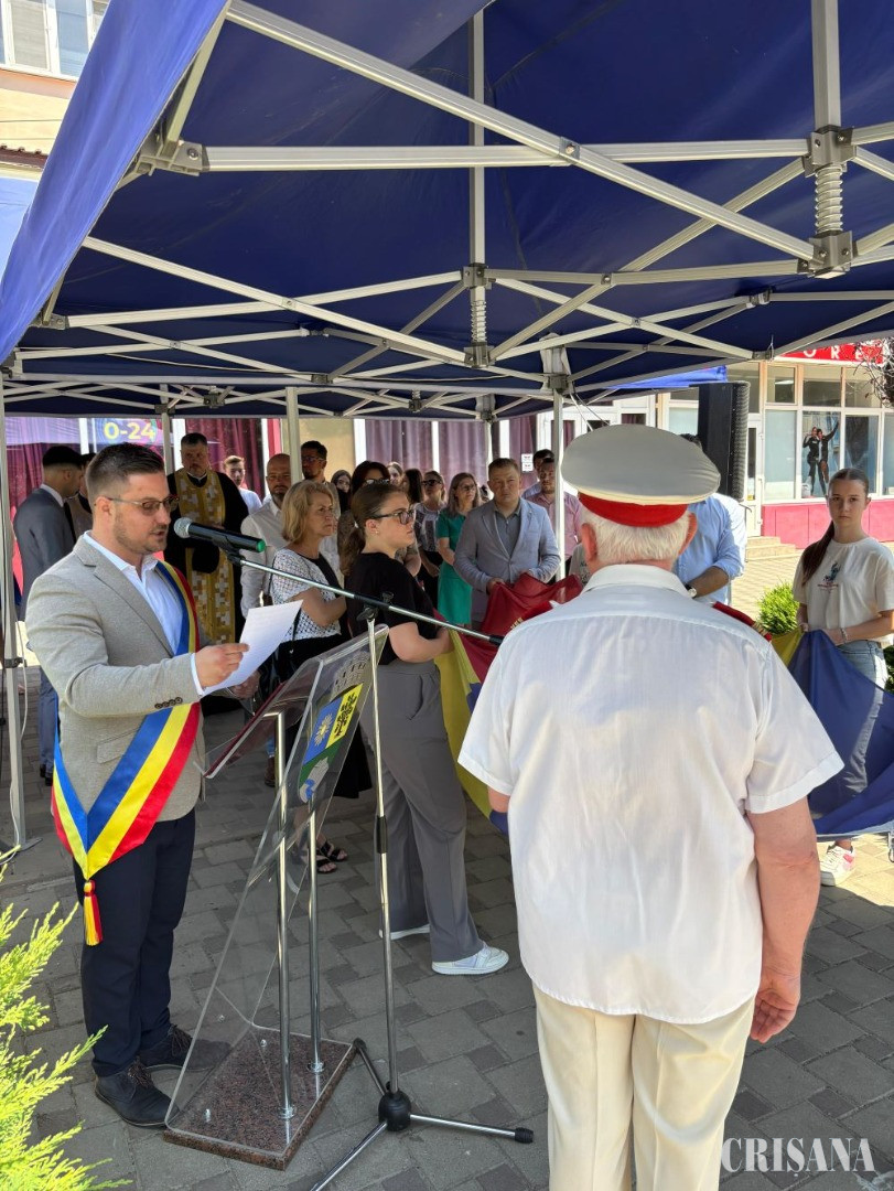 Înainte de a fi arborat, drapelul a fost binecuvântat de preoții prezenți la eveniment și sărutat de oficialitățile prezente: primarul Demian Zsolt, viceprimarul Cosmin Durnea, reprezentanți ai instituțiilor de învățământ, ai Poliției și al Casei de Cultură.
