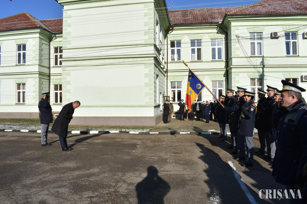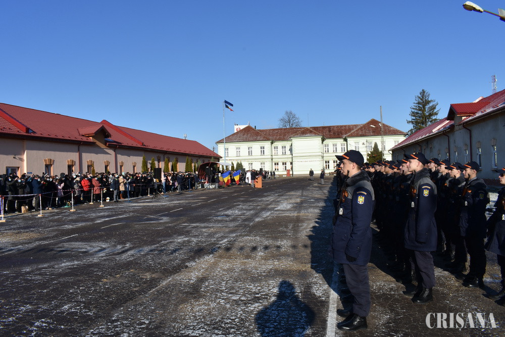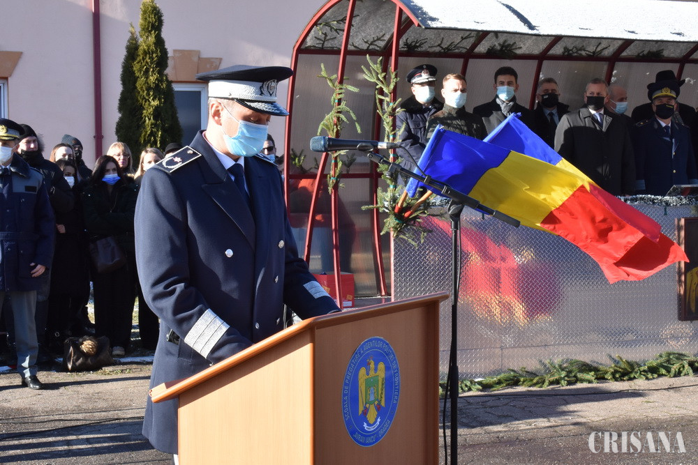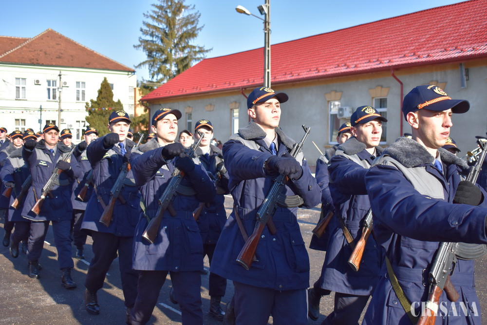 Festivitatea de depunere a jurământului militar de către cea de a 33-a serie de elevi declaraţi admiși în urma susţinerii examenului din sesiunea septembrie-octombrie 2021 a avut loc în prezenţa secretarului de stat Gabriel Marius Mureşan și a directorului Direcției Resurse Umane din cadrul Inspectorului General al Poliţiei de Frontieră Române, chestor de poliţie Valentin Melnic. Cei 224 de elevi școlarizați la Oradea, care au depus jurământul militar, dintre care 20 de fete şi 204 de băieţi, au fost declaraţi admişi în urma susţinerii examenului de admitere din sesiunea septembrie-octombrie 2021, examen la care au fost înscrişi 1.215 de candidaţi. Secretarul de stat Gabriel Marius Mureşan a transmis tinerilor elevi un mesaj în numele conducerii Ministerului Afacerilor Interne și a felicitat viitorii poliţişti de frontieră cu ocazia depunerii jurământului militar. „Veți fi în slujba țării, iar de modul în care veți acționa în misiunile încredințate va depinde siguranța semenilor și a comunităților pe care le veți apăra. Nu uitați nicio clipă că vă asumați o misiune dificilă care cere sacrificii și implicare maximă”. De asemenea, chestorul de poliție Valentin Melnic, director al Direcției Resurse Umane din cadrul IGPF, a transmis elevilor un mesaj în numele Inspectoratului General al Poliției de Frontieră Române exprimându-şi încrederea și totodată susținerea pentru formarea lor ca viitori polițiști de frontieră bine pregătiţi profesional. „Acum vă formați ca profesioniști și aveți șansa de a construi, peste fundația dată de cei 7 ani de acasă, un caracter impecabil, demn de apreciat și de urmat. Fiți demni! La oricât de multe provocări v-ar supune viața, păstrați fruntea sus și coloana vertebrală dreaptă”. Ziua depunerii jurământului militar a fost una cu o încărcătură emoțională aparte pentru tinerii elevi care și-au luat angajamentul solemn față de țară și au jurat în fața părinților, rudelor și a familiilor că se vor dedica trup și suflet slujirii României. Elevii vor urma cursurile școlii pentru o perioadă de un an de zile, perioadă în care vor parcurge o curriculă de învăţământ gândită și adaptată cerinţelor actuale ale societății și care este permanent completată de experienţa acumulată din parteneriatele pe care instituţia noastră le are încheiate cu alte instituţii similare de învăţământ din țară și străinătate. În această perioadă de pregătire elevii școlii parcurg un proces de învăţământ modern, centrat pe formarea competenţelor din standardul de pregătire profesională. Instituția de învățământ orădeană dispune de un corp profesoral bine pregătit care are ca obiectiv didactic principal formarea unor agenți de poliție de frontieră bine pregătiți profesional, în măsură să rezolve situațiile operative la frontierele României. Pentru atingerea acestor obiective elevii au la dispoziție o bază material-didactică modernă și laboratoare de specialitate dotate cu aparatura care se găsește în structurile operative ale poliției de frontieră. Activitatea de ieri s-a desfășurat cu respectarea măsurilor de prevenire a răspândirii Covid-19, invitații la acest eveniment au fost limitați la două persoane pentru fiecare elev și le-a fost adus la cunoștință despre faptul că pot participa doar cei care prezintă certificatul verde valabil. Ceremonialul depunerii jurământului militar s-a încheiat cu defilarea elevilor, sub comanda directorului școlii, comisar-șef de poliție Ionel Hotnoga.