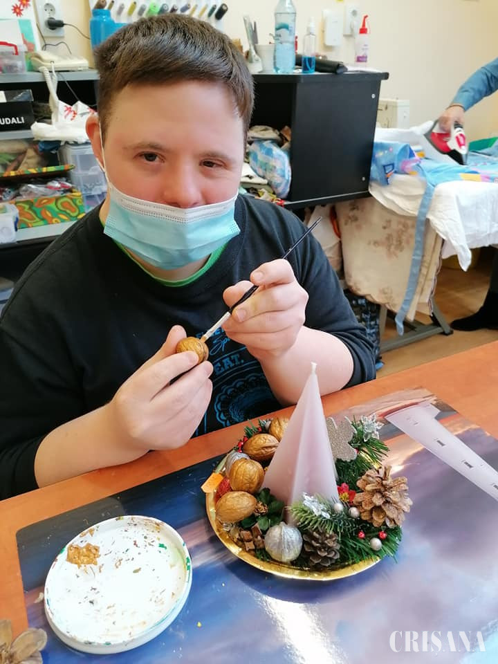 Mai sunt doar două săptămâni până la Crăciun, iar tinerii cu sindrom Down din Oradea se reunesc, în aceste zile, la Centrul de Zi Iedera, pentru a realiza, cu ocazia Sărbătorilor, coronițe, aranjamente și globuri frumos colorate.