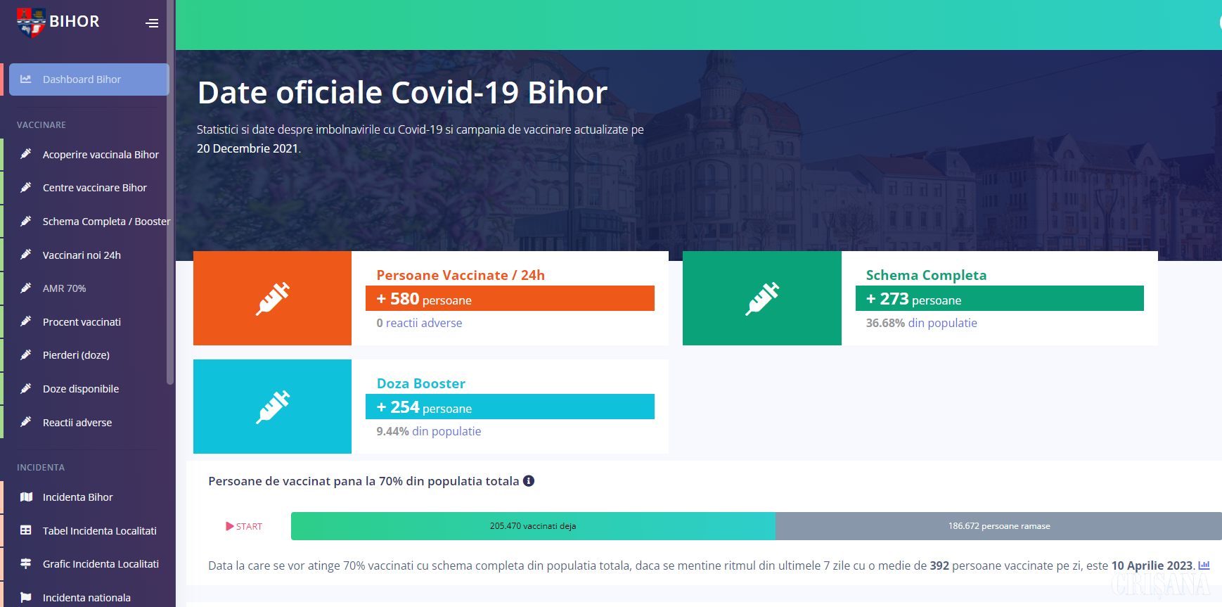 Platforma, care poate fi accesată pe covid19bihor.ro, prezintă statistici și date legate de îmbolnăvirile cu Covid-19, dar și modul în care decurge campania de vaccinare în Bihor. Toate aceste informații sunt actualizate zilnic.