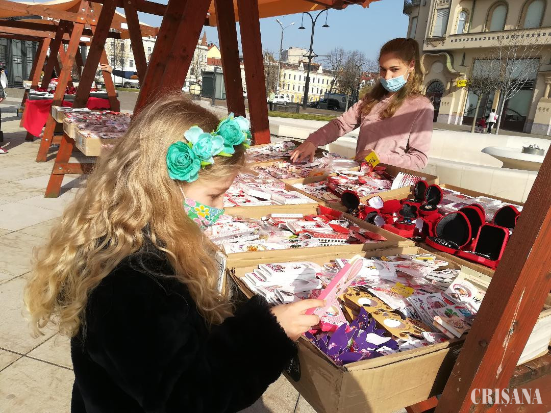 La un alt stand, se află Georgiana, o tânără de 18 ani, originară din Girișu Negru, care vinde pentru prima oară mărțișoare în Oradea. „Pentru prima zi, vânzarea a fost destul de bună. Cei care cumpără produsele sunt, în general, persoane vârstnice, dar am avut și tineri sau copii care au cumpărat pentru mamele sau bunicile lor”, ne-a declarat comercianta.
