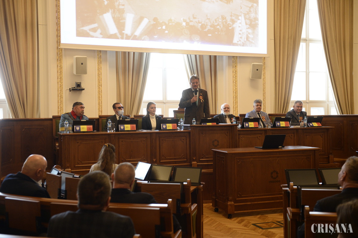 Sala Traian Moșoiu a Primăriei Oradea a găzduit, miercuri, simpozionul intitulat „Primăvara Reînvierii noastre” - 105 de ani de la instaurarea administrației românești în Bihor și Oradea, organizat de către Asociația Națională Cultul Eroilor „Regina Maria” - Filiala Bihor.