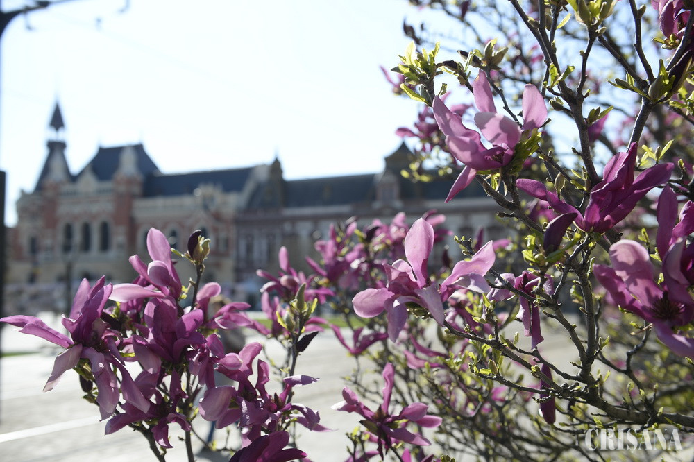 Suntem în plin sezon al magnoliilor, iar anumite locuri din Oradea s-au colorat de când au înflorit. Una dintre zonele cele mai iubite de orădeni pentru frumusețea acestei flori nobile este Palatul Baroc. Magnoliile creează aici un tablou exploziv, pe care, zilnic, vin să-l admire sute de vizitatori. Frumoasele flori au nevoie de o îngrijire mai atentă, motiv pentru care Episcopia Romano-Catolică de Oradea a apelat, de-a lungul timpului, la specialişti, reușind, astfel, să păstreze copacii de peste un secol. În parcul Palatului Baroc, înfloresc în această perioadă și lalelele, plantate chiar sub arborii de magnolii, odată cu lucrările de amenajare a grădinii realizate de Episcopie.