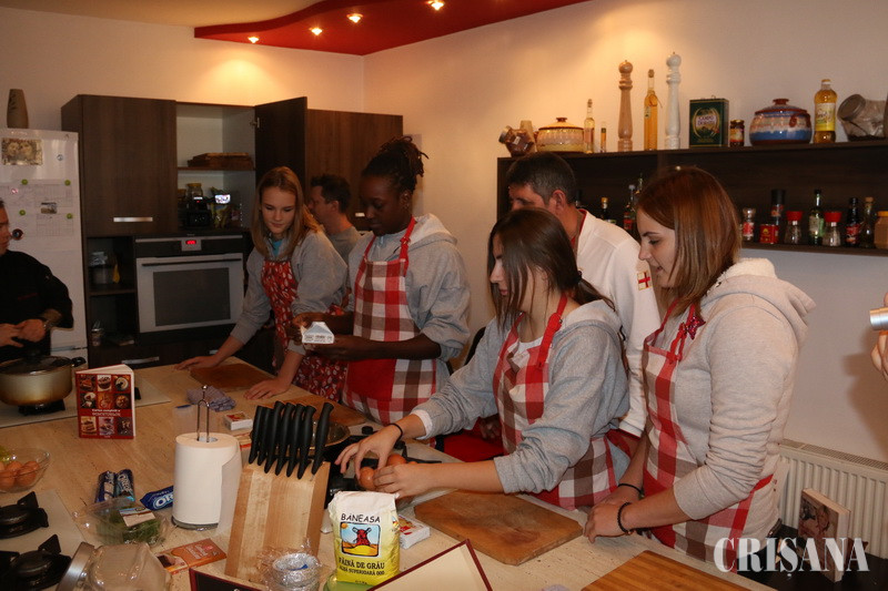 „Opt fete iau parte la această acțiune. Ele sunt împărțite în două echipe și gătesc două feluri de prăjituri, așa cum le-a spus Chef Tiberius. Direcția Generală de Asistență Socială și Protecția Copilului Bihor ne-a dat toate aprobările necesare, pentru a putea duce tot ce gătim la Centrul Ciupercuțele de lângă Mănăstirea Sfânta Cruce. Sunt opt copii acolo și, după ce terminăm aici, mergem să le ducem prăjiturelele”, ne-a declarat Ioana Anica, antrenor secund Universitatea CSM Oradea.