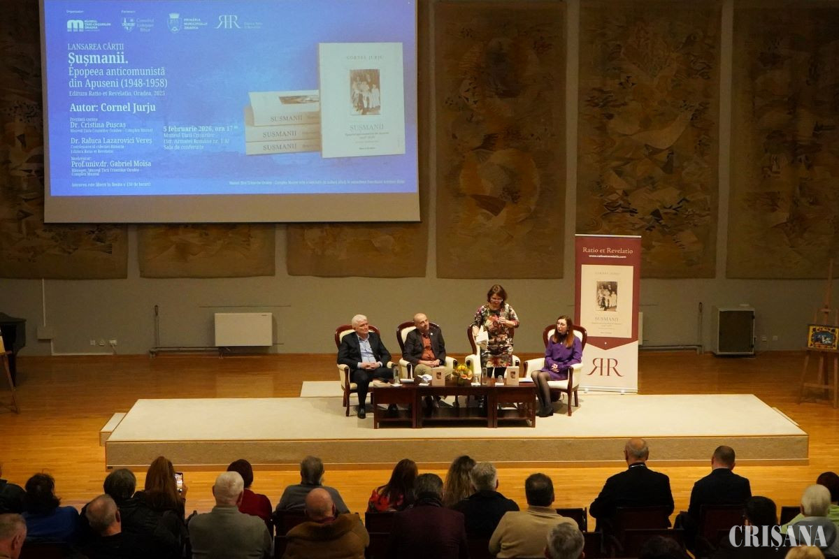 Sala de conferințe a Muzeului Țării Crișurilor Oradea a găzduit, recent, lansarea volumului „Șușmanii. Epopeea anticomunistă din Apuseni (1948–1958)”, semnat de istoricul Cornel Jurju și apărut la Editura Ratio et Revelatio, Oradea, 2025.