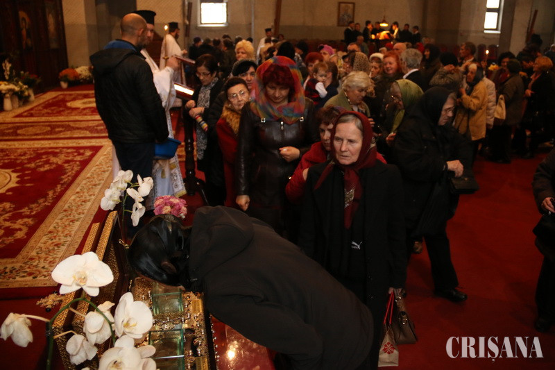 Joi dimineață, PS Sofronie, episcopul ortodox al Oradiei, a oficiat Sfânta Liturghie arhierească, înconjurat de un număr mare de ieromonahi, preoți şi diaconi. În cuvântul de învăţătură, episcopul le-a vorbit celor prezenţi despre viaţa şi lucrările minunate ale Sfântului Nectarie, reliefând minunile săvârşite de Sfânt pentru cei aflaţi în suferinţe, fiind grabnic ajutător şi izbăvitor de boli şi suferinţe nu doar în vremurile trecute, ci şi în zilele noastre.