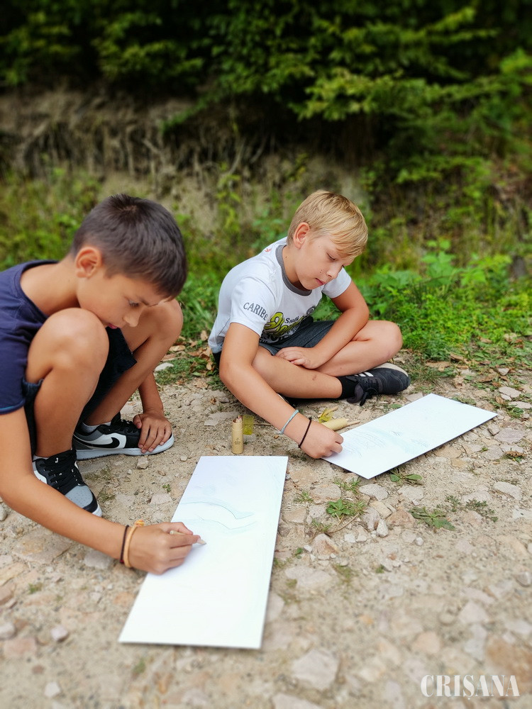 Tabăra continuă toată săptămâna cu activități artistice, în special de pictură, dar şi cu drumeții, jocuri, voie bună și inspirație!