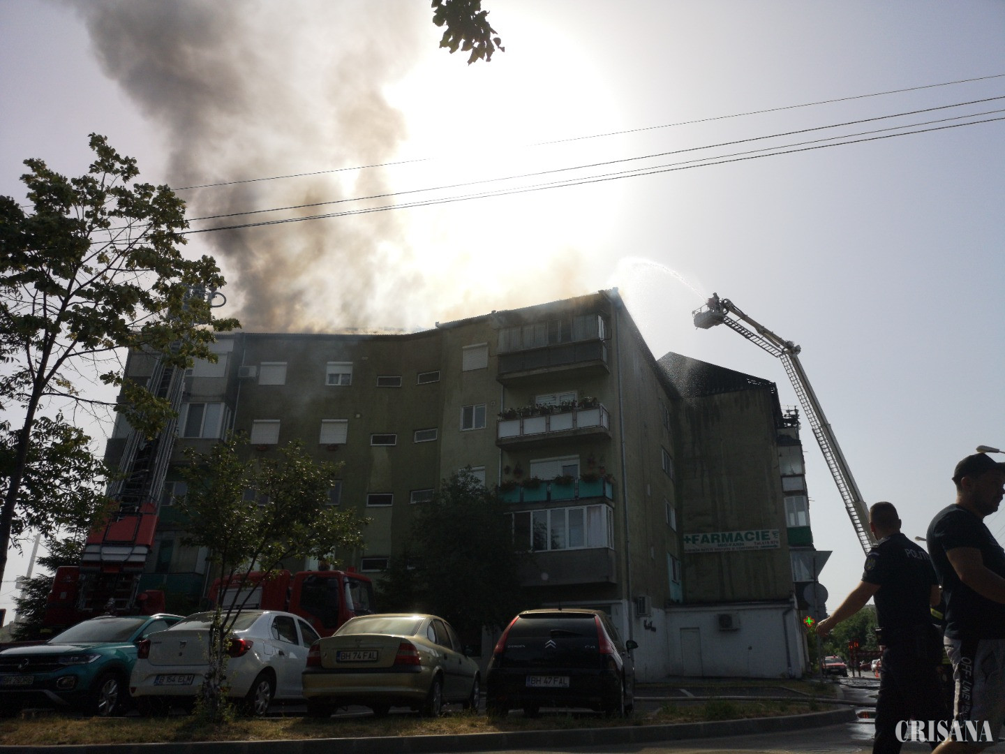 Un apartament și acoperișul unui bloc, cuprinse de flăcări - Incendiu violent în Oradea