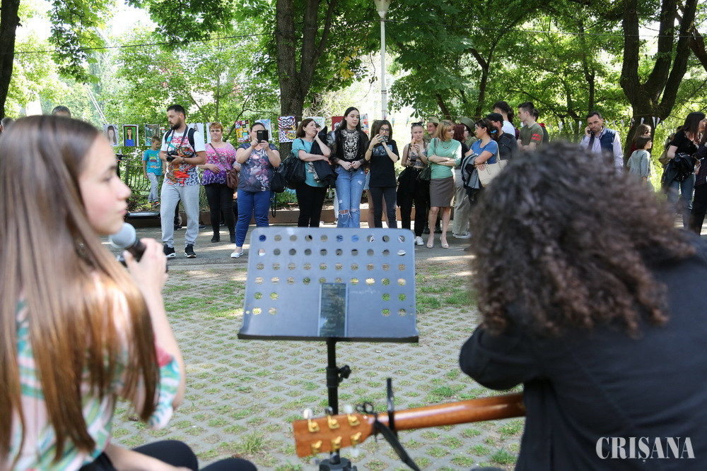 Parcul Libertăţii din Oradea a fost animat vineri după-amiază de elevi şi profesori ai Şcolii de Arte Francisc Hubic din Oradea. Copiii orădenilor au fost invitaţi să se alăture acestor elevi, care au oferit recitaluri muzicale şi o expoziţie în aer liber, prin desene pe asfalt.