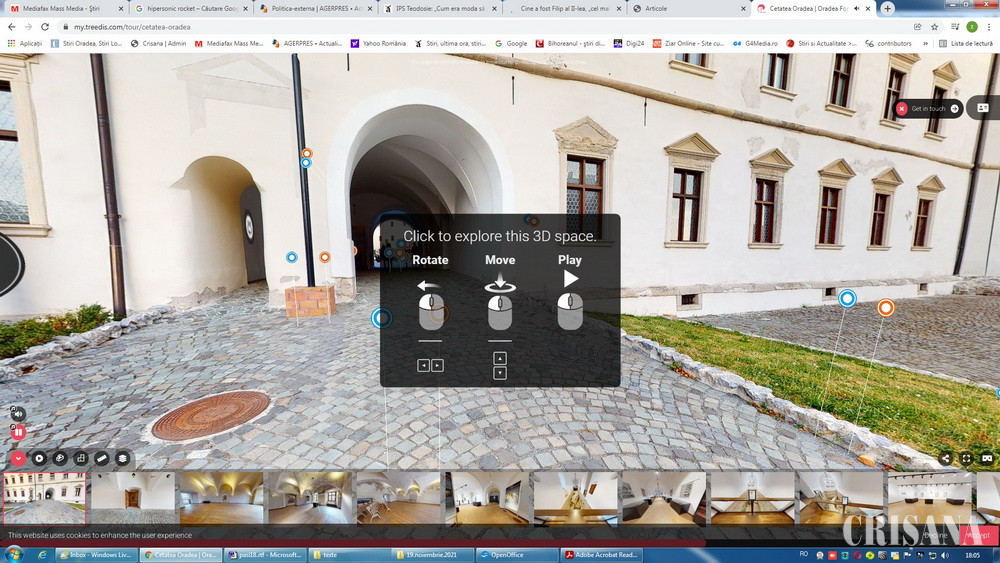 De menționat că link-ul poate fi utilizat și încorporat pe orice platformă digitală, respectiv website sau social media și poate fi vizualizat și parcurs atât de pe calculator/laptop, cât și de pe telefonul mobil. Vizualizarea poate fi efectuată prin înaintarea în încăpere și între etaje, fiind disponibile și facilități de vizualizare de tip panoramă a întregului obiectiv sau a fiecărui etaj în parte, precum și posibilitatea de a genera măsurători. „Am început timid în 2008, prin proiectul referitor la Revitalizarea Cetăţii Oradea în vederea introducerii în circuitul turistic: Cetatea Oradea, ca și complex turistic European, în valoare de 36 milioane lei, pentru ca astăzi valoarea proiectelor cu fonduri europene în două exerciții financiare (2007-2013 și 2014-2020) să ajungă la peste 100 milioane lei pentru punerea în valoare a acestui obiectiv”, a precizat Marcel Boloș, directorul ADR Nord-Vest.