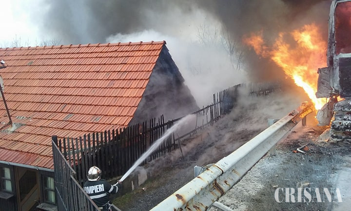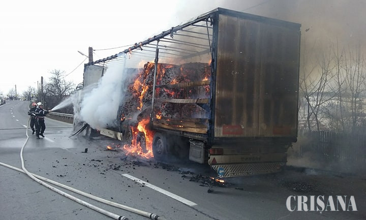 Ieri, în jurul orei 12.30, o persoană a sesizat Inspectoratul pentru Situaţii de Urgenţă „Crişana” al judeţului Bihor cu privire la producerea unui incendiu la un TIR, pe raza localității Beznea. La fața locului au fost mobilizate trei echipaje de pompieri militari din cadrul Stației Aleșd cu două autospeciale de stingere și o ambulanță de tip B2, un echipaj din cadrul Detaşamentului 1 de Pompieri Oradea cu o autospecială de lucru cu apă și spumă și Serviciile Voluntare pentru Situații de Urgență Bratca, Bulz și Borod. Potrivit purtătorului de cuvânt al ISU Crişana, Camelia Roşca, „în momentul sosirii forțelor de intervenție, incendiul se manifesta violent la nivelul întregului autovehicul, flăcările extinzându-se și la acoperișul unei locuințe din apropiere, respectiv la un gard din lemn”. Echipajele de pompieri au acționat simultan pentru protecția locuinței, împiedicând propagarea flăcărilor la întregul acoperiș și pentru stingerea incendiului la autocamionul încărcat cu materiale combustibile. În urma producerii evenimentului, a cărui cauză probabilă este în curs de cercetare, au ars autovehiculul și marfa transportată (11 baloți de hârtie a câte aproximativ 3 tone fiecare), circa 20 de metri pătrați elemente de construcție din structura acoperișului casei și un gard din lemn. Incendiul a fost stins în jurul orei 13.30, iar la ora 15.00, forțele de intervenție acționau în continuare la fața locului pentru înlăturarea efectelor negative ale evenimentului. Nu au existat persoane rănite.