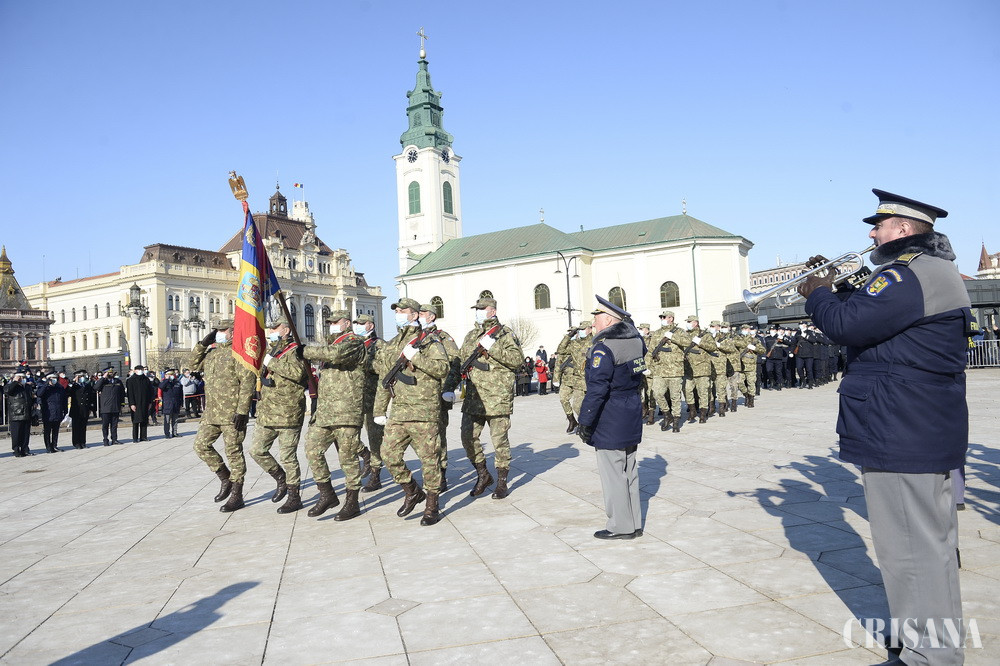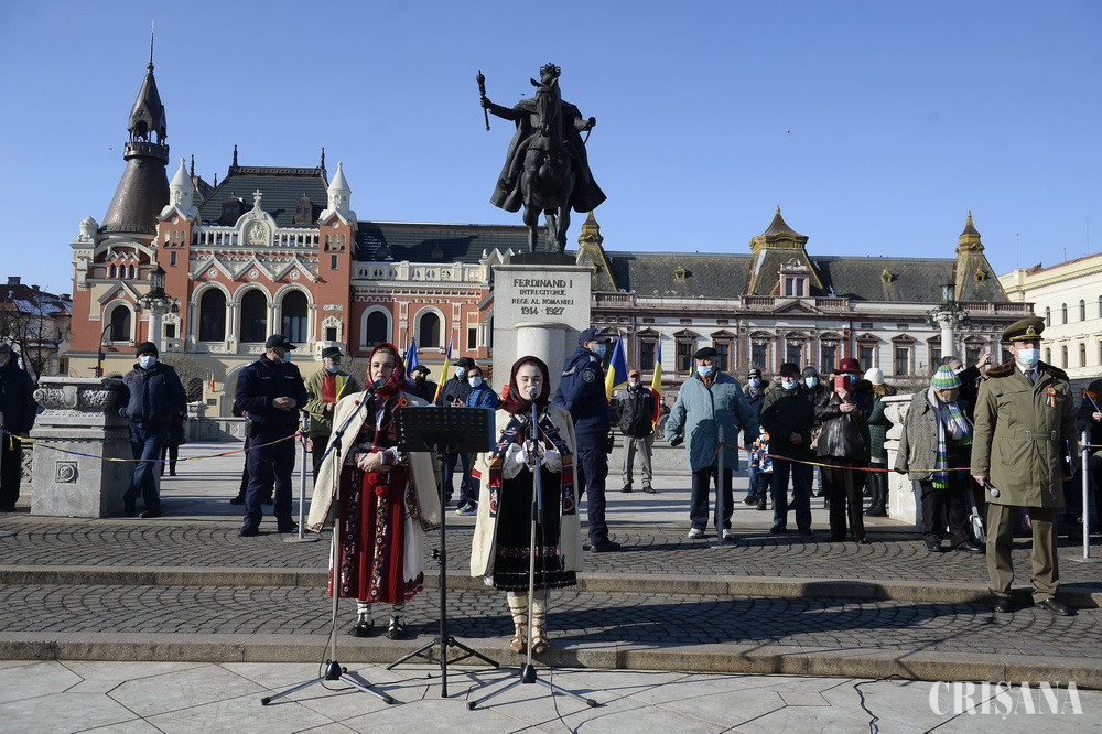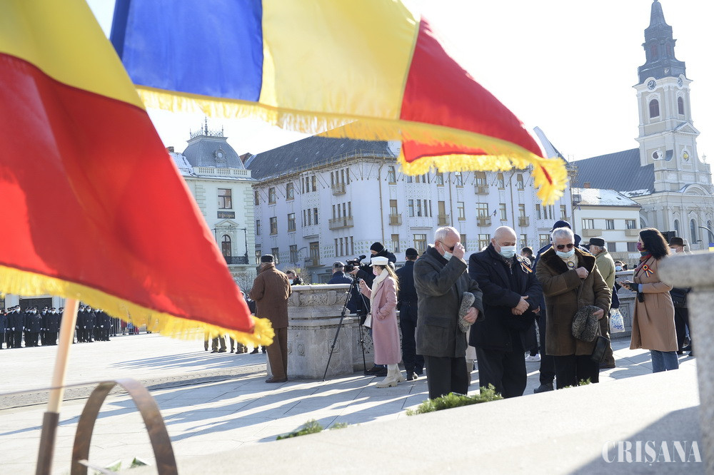 Copii curioși, tineri și vârstnici cu stegulețe, politicieni în paltoane groase și militari cu diferite grade, au rezistat cu stoicism ieri în fața frigului, la ceremonia organizată cu ocazia Micii Uniri. Printre cei prezenți s-au aflat prefectul Dumitru Țiplea, alături de subprefecții Emilian Pavel şi Botházy Nándor, primarul Florin Birta, alături de viceprimarul Marcel Dragoș și city-managerul Mihai Jurca și vicepreședintele Consiliului Județean Bihor, Mircea Mălan. Evenimentul a început cu prezentarea onorului, salutul drapelului de luptă și intonarea imnului de stat al României. A urmat apoi o slujbă Te Deum oficiată de preoții garnizoanei din Oradea.