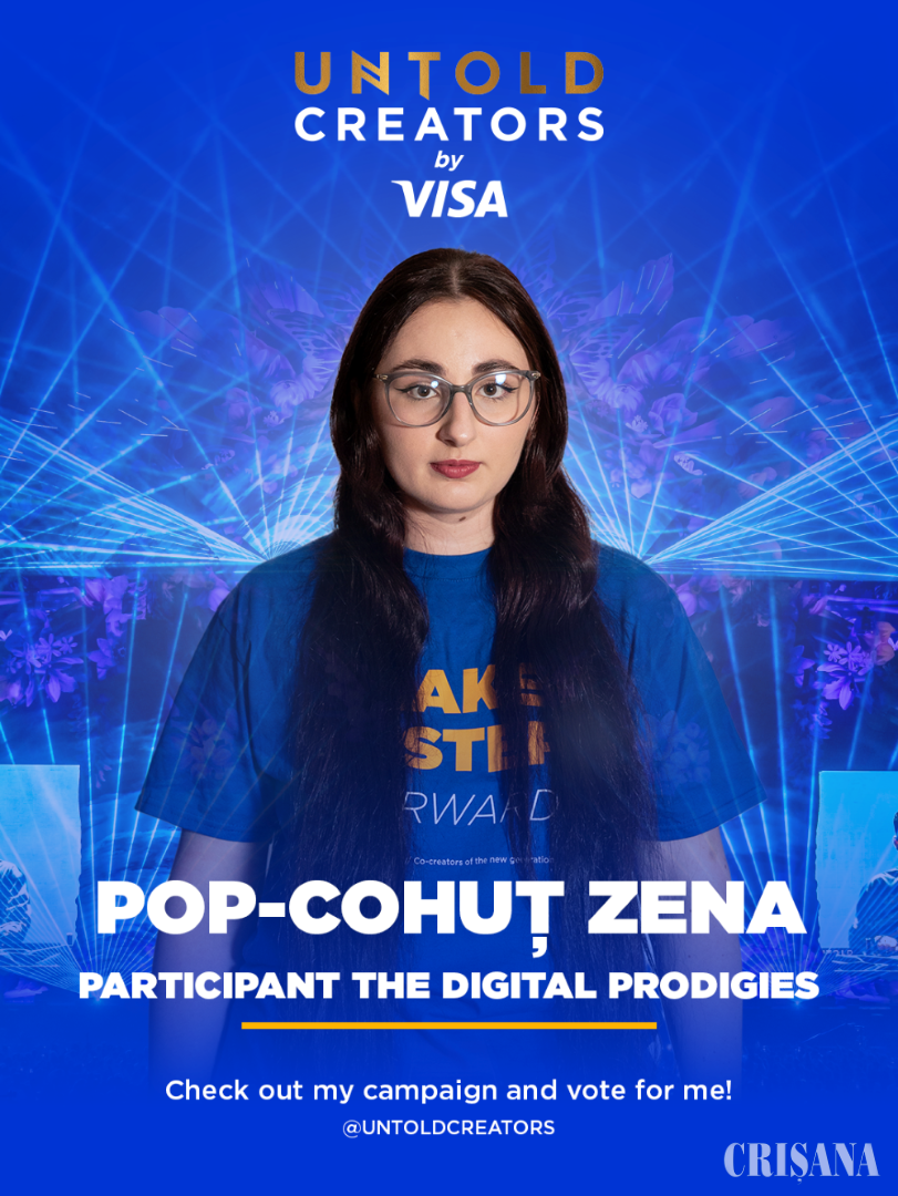 Zena Pop-Cohuț, proaspăt absolventă a Liceului Greco-Catolic „Iuliu Maniu” și vicepreședinte al Consiliului Județean al Elevilor Bihor, este singura participantă din Oradea înscrisă în categoria „The Digital Prodigies” a competiției Untold Creators, un program dedicat tinerilor pasionați de conținut digital.