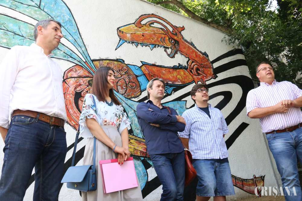 Totul a pornit de la o remarcă conform căreia punctele termice sunt cele mai urâte clădiri din Oradea. Aşa a început colaborarea, în urmă cu un an şi jumătate, dintre Termoficare Oradea, care şi-a propus reabilitarea clădirilor care adăpostesc puncte termice, şi Facultatea de Arte Vizuale, care a venit cu ideile de redecorare. Vernisajul primei lucrări de pictură monumentală realizată în spaţiu urban a avut loc, ieri, la Punctul Termic 100, de pe str. Aluminei nr. 41 (în spatele Grădiniţei nr. 45), primul dintre cele cinci care vor beneficia de reamenajare împreună cu studenţii. „Acest punct termic este proiectul pilot, alte patru asemenea clădiri urmând să beneficieze de reamenajare împreună cu studenţii. Avem nişte teme care au fost agreate împreună cu conducerea Facultăţii de Arte, principalii actori ai acestui proiect fiind studenţii, în acest caz Robert Tal şi Ana Munteanu, care au muncit de dimineaţa până seara, pe o căldură greu de suportat. Dorinţa noastră este să schimbăm aspectul punctelor termice, considerate de unii cele mai urâte clădiri din Oradea, în acest sens urmând să intervenim chiar şi la exteriorul acestora, prin amenajarea unor oaze de verdeaţă”, a declarat Dan Creţu, directorul comercial al Termoficare Oradea. Lucrarea, cu titlul Dragonfly, a fost concepută de Robert Tal şi realizată de acesta în colaborare cu Ana Munteanu, ambii studenţi în anul I la programul de studiu Grafică. „Este o primă realizare dintr-un proiect mai amplu, prilej cu care avem ocazia să-i evidenţiem pe studenţii noştri. Robert Tal şi Ana Munteanu au fost o lecţie de talent, abnegaţie şi consecvenţă. Fiind cadru didactic la Facultatea de Arte Vizuale ai posibilitatea şi să înveţi la rândul tău, nu doar să-i înveţi pe alţii. Iar de la aceşti tineri ai ce învăţa. Una dintre temele gândite a fost a animalelor fantastice, pentru că are un aspect ludic, dimensiunea jocului, fabulosului, care ar putea scoate oraşul dintr-un gri de beton”, afirmă conf. univ. dr. Teofil Ştiop, coordonatorul proiectului. Robert şi Ana, ambii în vârstă de 20 de ani, el din Oradea, ea din Republica Moldova, sunt colegi în anul I la secţia de Grafică a Facultăţii de Arte Vizuale. Aceştia au povestit că realizarea lucrării a durat aproximativ o săptămână, cu muncă de dimineaţa până seara, dar au făcut totul din plăcere. Au folosit vopsele acrilice şi sprayuri rezistente chiar şi la condiţii meteo nefavorabile. „Există un curent street art, care în România e abia la început. M-am documentat foarte mult despre acest fenomen şi am început şi eu să-l practic. Pot să spun că Oradea nu este cel mai iniţiat oraş în street art graffiti, dar are un mare potenţial”, spune Robert. La eveniment a fost prezent şi Stănel Necula, directorul Termoficare Oradea, care a precizat că, în Oradea, există 149 puncte termice, dintre care 20 vor fi reabilitate integral în acest an, iar în cazul altor 15 vor fi reabilitate faţadele exterioare. „Punctele termice fac parte integrantă din acest oraş. Ele trebuie armonizate, astfel încât să ne placă să le privim, au agresat destul privirea orădenilor”, a declarat Stănel Necula, menţionând că reabilitarea unui punct termic se ridică la aproximativ 10 - 15.000 lei. Următoarele două puncte termice care vor fi reabilitate în cadrul proiectului „Oradea colorată” sunt 126, din Rogerius, şi 845, din Nufărul.